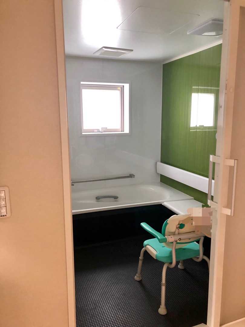 部屋は2階のバリアフリー洋室で、温泉ではないにせよ内風呂があり、トイレも車椅子でも使えるように広く、寛ぎ用の椅子とテーブルも揃っています。