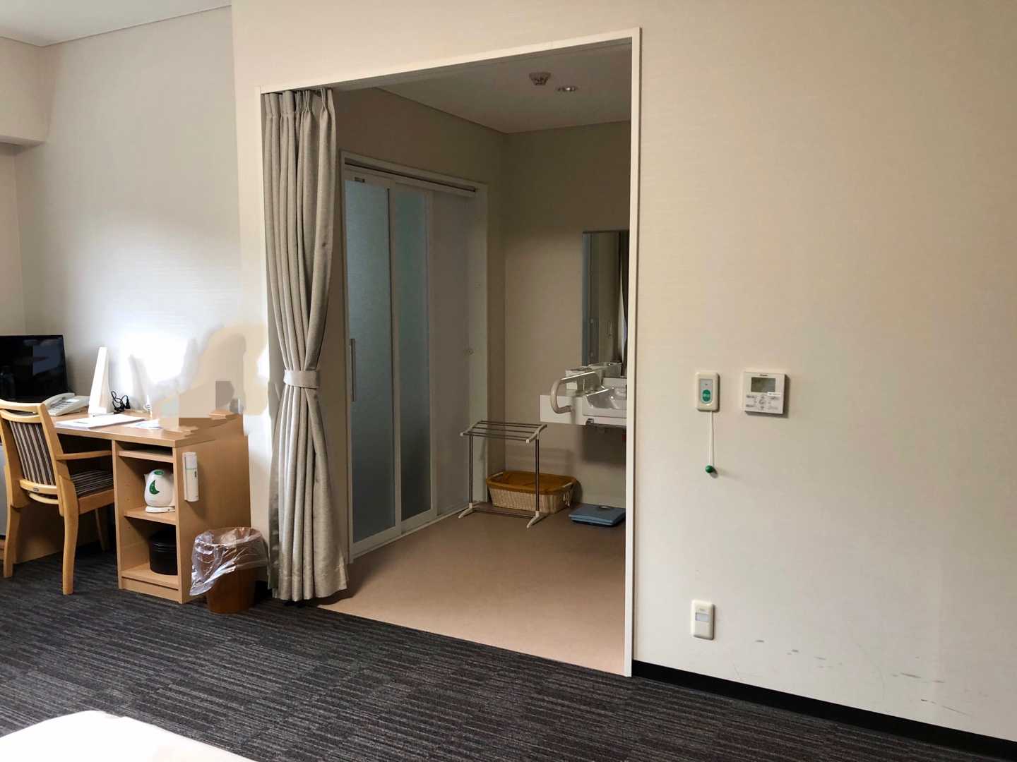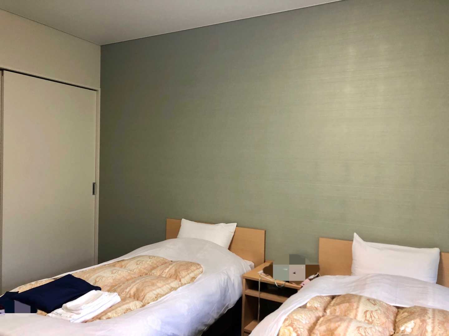 ちょっと硬めのベッドが二つですが、寝心地も良く、その他に折りたためるエキストラベッドも用意されたりで、バリアフリー洋室というだけあってか、相応の広さです。