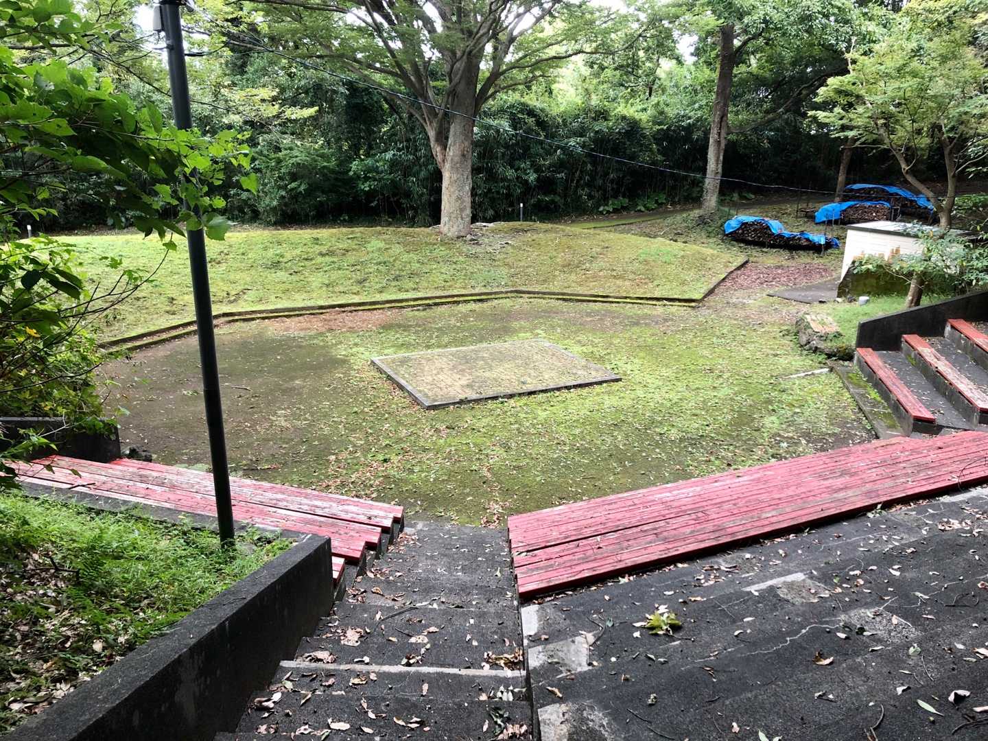 中庭などもちょっと歩いてみましたが、足湯があったり、創作室やキャンプファイヤー用の広場がありました。さすが移動教室用の施設です。