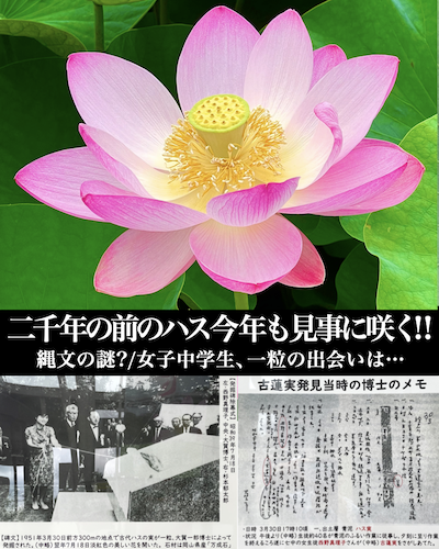 2023年のブログの写真を、今年のハスに…あれから三年。[大賀ハス] 植物学者でハスの権威者でもある大賀一郎先生のエピソードは有名です。あの広大な千葉市の東京大学検見川総合運動場で、3粒の古代蓮のタネを発見したのはボランティア参加の[女子中学生]。その中で開花したのは1個のみ。千葉公園にある大賀蓮記念碑、この大賀博士の功績を讃えた記念碑にも第一発見者は全く記載されていません。ところが昭和58年7月18日の この石碑の除幕式には28歳になった元中学生が招待されて、除幕の綱を引いているのです。全く表に出てこない偉大なる無名の第一発見者 [女子中学生]は誰。 *この一粒の発見こそが、今や広く世界に咲く大賀ハスの影の功労者、この [女子中学生]のお名前は? 大賀博士の発見時の手帳の写真から判明しました。この中学生のお名前が発見者として記載。小さな文字で、「3/30日夕刻17:10頃 西野真理子さん発見、(古蓮実 長さ1c、重さ0.6g)」とあります。(千葉生涯学習センター 大賀蓮展2023/7に掲載の写真より)プラントハンターや、第一発見者には命名権もあるのでは!? *千葉市に転居して約53年、当時は7月25日ごろ東大グランドで行われていた「大賀ハスまつり」も温暖化の影響か、最近では6月から開花、千葉公園では7月初旬が見頃です。今年も見事に咲いた美しい古代蓮 …2000年のロマン、縄文の花…[NISHINO-OHGA LOTUS] に会いに行こう~🎵