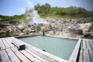 頂上近くの藤七温泉や蒸ノ湯温泉のほかに、少し足を伸ばせば火山地獄がみられる後生掛温泉や、北投石で有名な玉川温泉などの名湯がある。一帯は八幡平温泉郷として、国民保養温泉地にも指定されている。~フリー百科事典ウィキペディアより~
