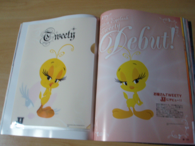 JJ2007年3月号付録の『お嬢さんTweety』クリアファイルJJ最新号を買うと可愛いクリアファイルがついてきます☆ファイルもオシャレにしてみます?⇒JJモデル有村実樹の等身大の可愛さはとても参考になる!JJを読む度にそう思う。