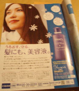 昨日は東京駅のすぐ近くにある、丸ビルに行ってきました!仕事仲間と仕事の打ち合わせをしてきました。とっても有意義な時間でした。その打ち合わせの前に、丸ビルの中でファンケルを発見したんです。とってもキレイなファンケルがありました。そして、そこには、無料の冊子が置いてあったんですね。その冊子がとっても有益そうだったので、もって帰ってきました!でも、僕はその冊子の内容よりも、この広告に反応をしてしまいました!(笑)とうとう髪にも美容液をつける時代になったんですね!最近は『飲む美容液』のことが気になっていて、美容液と言う言葉に敏感なんです。だから、なお更この広告に反応をしました。美容液は飲んでもよし、髪につけてもよし!次は、どんな美容液が発売になるんだろう~!?とっても気になるところです。飲む美容液とは・・・