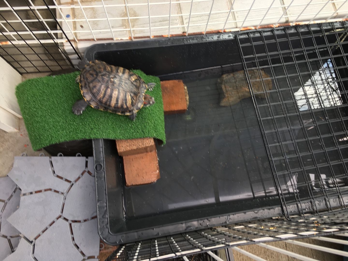 亀さん達の住まいは玄関脇の駐車場の隅にしました。