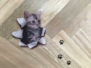 猫ちゃんが顔を出しているステッカーも貼って見ました。