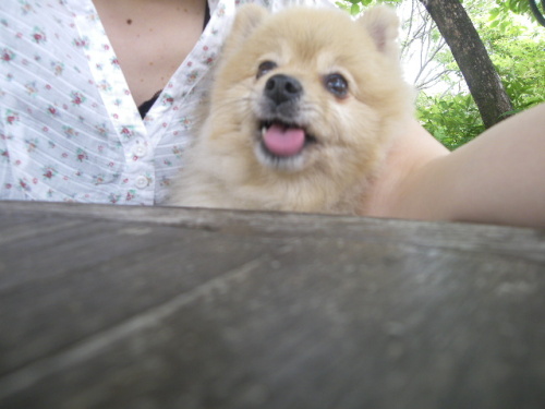 T舞公園にて瞬間芸今にもチューしそうな? 抱っこラピここでは二人ともご機嫌さんにぱっ人がいないとこんなにおりこうさんのラピ君なのにね。