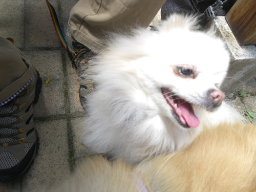 眠いとかぁしゃんの傍へやってくるラピしゃんとアズしゃんドタバタひっつき姉妹@御射鹿池東山魁夷の世界 ワンコが一緒(ラピのような)だとなかなか難しいご飯やさんここははじめてかな。@ガムラスタン リラックスなアズと落ち着きゼロなラピ夫曰く「すごくお利口に出来たラピ」