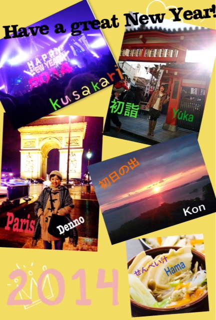 2014年明けましておめでとうございます皆さんお正月はいかがお過ごしでしたか?スタッフもそれぞれお休みを満喫してきて、パワーもしっかり充電してきました今年もいろいろ挑戦しつつ、また、皆様に喜んで頂けるよう頑張っていきます今年もよろしくお願いします