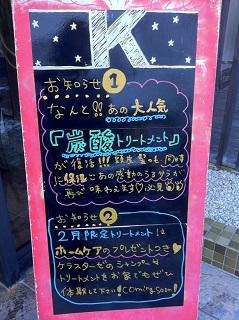 こんにちはビーハイブ本町店です乾燥する季節がまだまだ続きますね~1月はもうすぐ終わりますが、大人気の「炭酸トリートメント」と2月は限定でホームケア付きのトリートメントメニューができますので楽しみにしていてください
