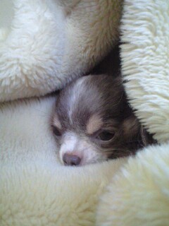 モカも寒いから便乗して毛布に入るよ(^O^)