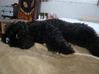 1日、ノンちゃんがトリミングに行って来ました☆前日までは・・・こんな風に・・・貞子風で白目になって寝てましたが・・・怖いデスノ・・・ノーマさん????どんな風に変身したかというと・・・こんな感じデス!!お天気じゃないと黒いノンちゃんはうまく写りません・・・光をおくれぇぇぇぇ・・・頑張って撮る・・・ノンちゃんやる気なし・・・起きておくれ・・・ノンちゃ~ん!!(リボンは金魚です☆)・・・結局起きません。まだ前の毛を伸ばしだしたところで、もじゃもじゃ感がありますが、粘り強く頑張るつもりです☆耳は前回サマーカットで短くしてしまったので、今回から少しずつ戻してゆきます。(これから暑くなるって??)やっぱ私、長耳ノンちゃんの方が好きだわ^^♪今回はcon様のところのジャムちゃんのカットを参考にさせていただきました♪