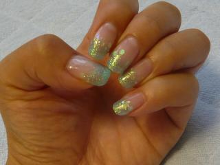今月超忙しいです・・・日記も書けないし、皆さんのブログをちょこちょこ覗くだけで、コメントする時間もなく・・・ごめんなさい><しかもブログ拝見中、「ママァァァ!!」と呼ばれたり・・・じっくりも読めてなかったり。来月はちょっと余裕あるかも^^そしたらまたコメント残させていただきます!!えっと・・・デビル、最近すっかりTACご無沙汰^^;(←機械にカードを通すと正しい発音が流れ、 マイクを使って自分の声も録音出来ます)やってみっか!!P1030261by shino-hむふふ。「bear」です。。。(←だから??)最近、日本語も出てきて・・・一昨日、突然・・・「ママ、びじぃぃん(美人)」えですよ。ホント。いつ覚えるの、そんなん。。。で、私が喜んでいたら・・・「ママ、ブゥ(ブス)」「・・・・・・・・・・・・・。」ですよ、ホント。。。そんなこともありましたが、昨日、ネイルの日で来月は夏だし(夏だしってのも変な言い方だけど)、金魚アートをしたいので、今回はシンプルに。グリーンラメにフレンチで、ホロをプラスしキラキラ感出しました。基本的にパープル系が好きですが、夏は涼しい色を心がけます、暑苦しいから^^;どうでもよい、ネイル報告でした。