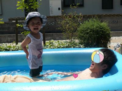今日、とてつもなく暑くて・・・ついにプールを出しましたこちらの地域では7月13日~15日がお盆。我が家もお兄ちゃんを迎える為の「迎え火」を10時に済ませ・・・早速ドボンッ旦那・・・お風呂じゃないんだからさ・・・今年も出ました、ワニさんデスデビル、ワニさんの攻撃にあう。。。パパの攻撃にもあう。。。『ママ~!!助けてぇぇ!!」『ママもおいで~!!』私は遠慮しましたが・・・ノンちゃんも暑くて家の中から見物してました。明日から旦那が仕事だと・・・私がやるのか???