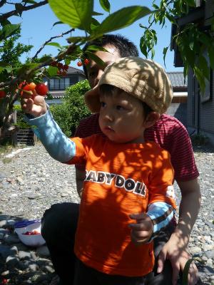 庭のさくらんぼが大量にあったので・・・更に収穫更に更に収穫木の大きさは・・・↑このくらいなんであまり大きくはないですね、多分。デビルと旦那と3人でこんな感じに採れましたそして5月6日になって撮った「こどもの日」の写真「こどもの日」メニューでいっぱいいっぱいですっかり写真を忘れていたのでした