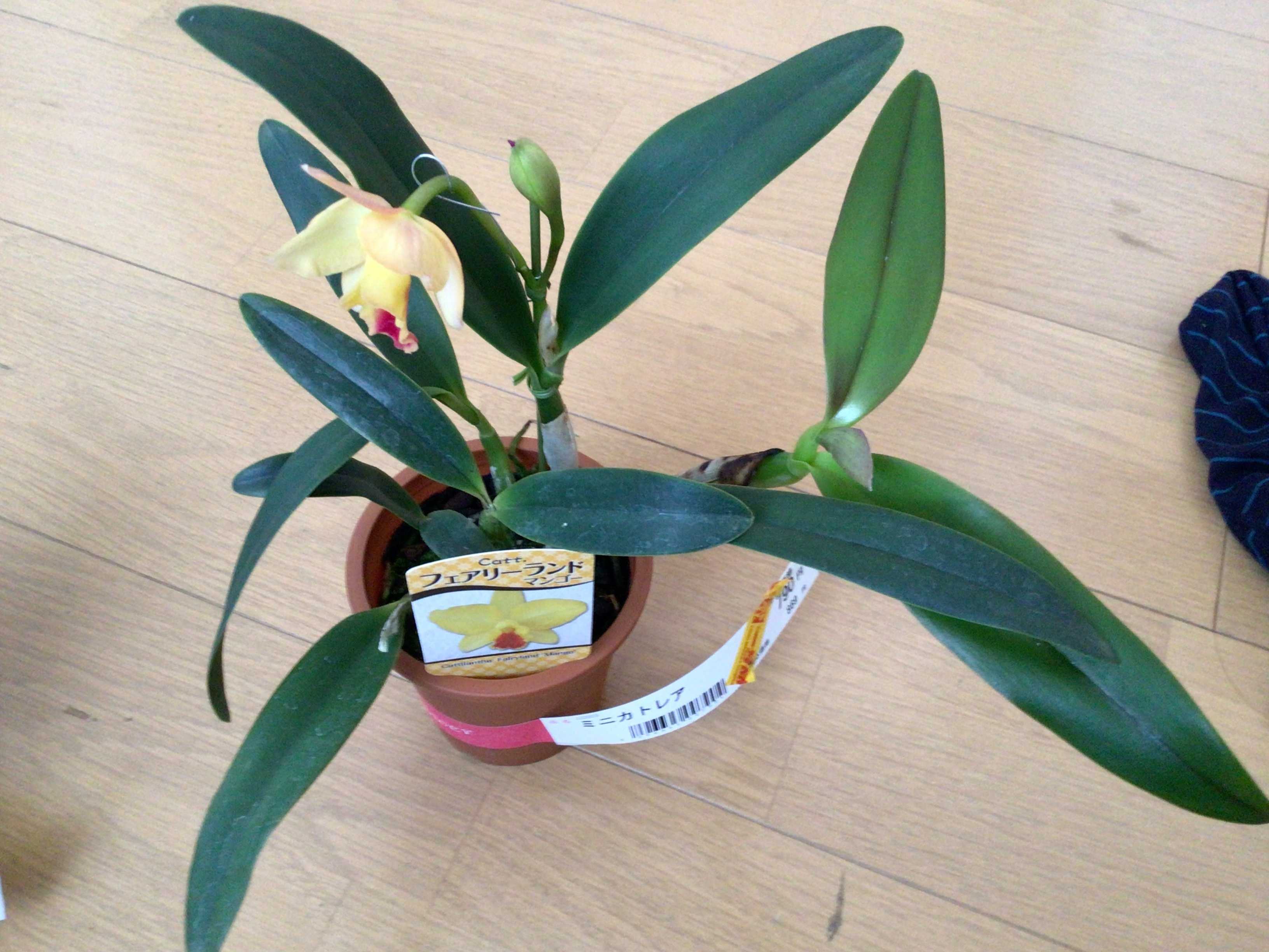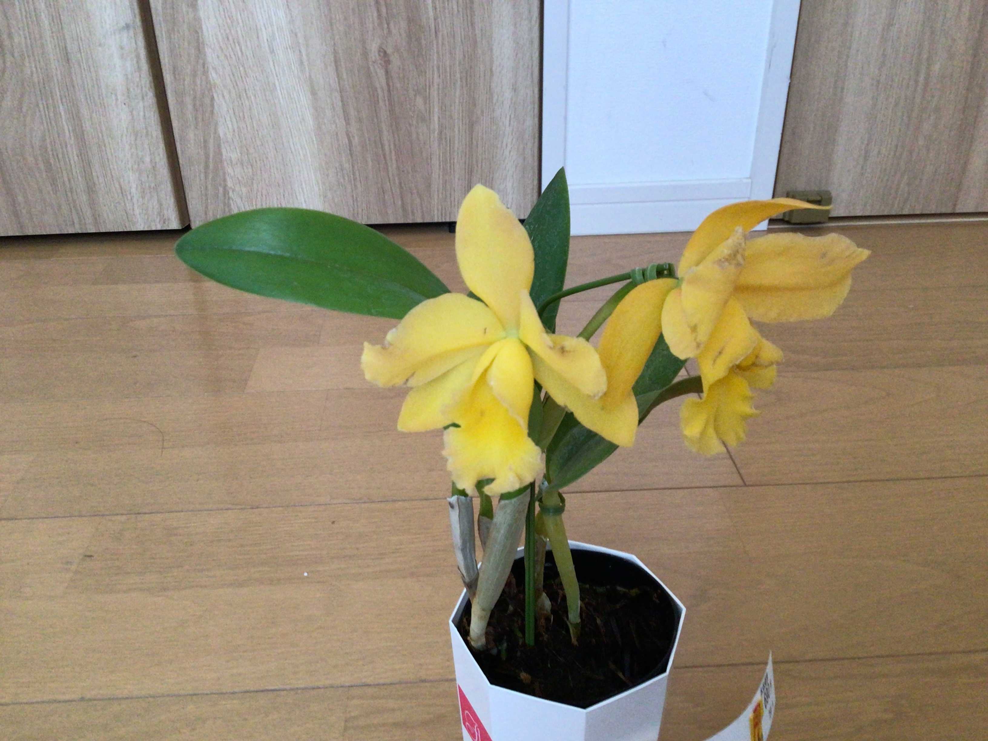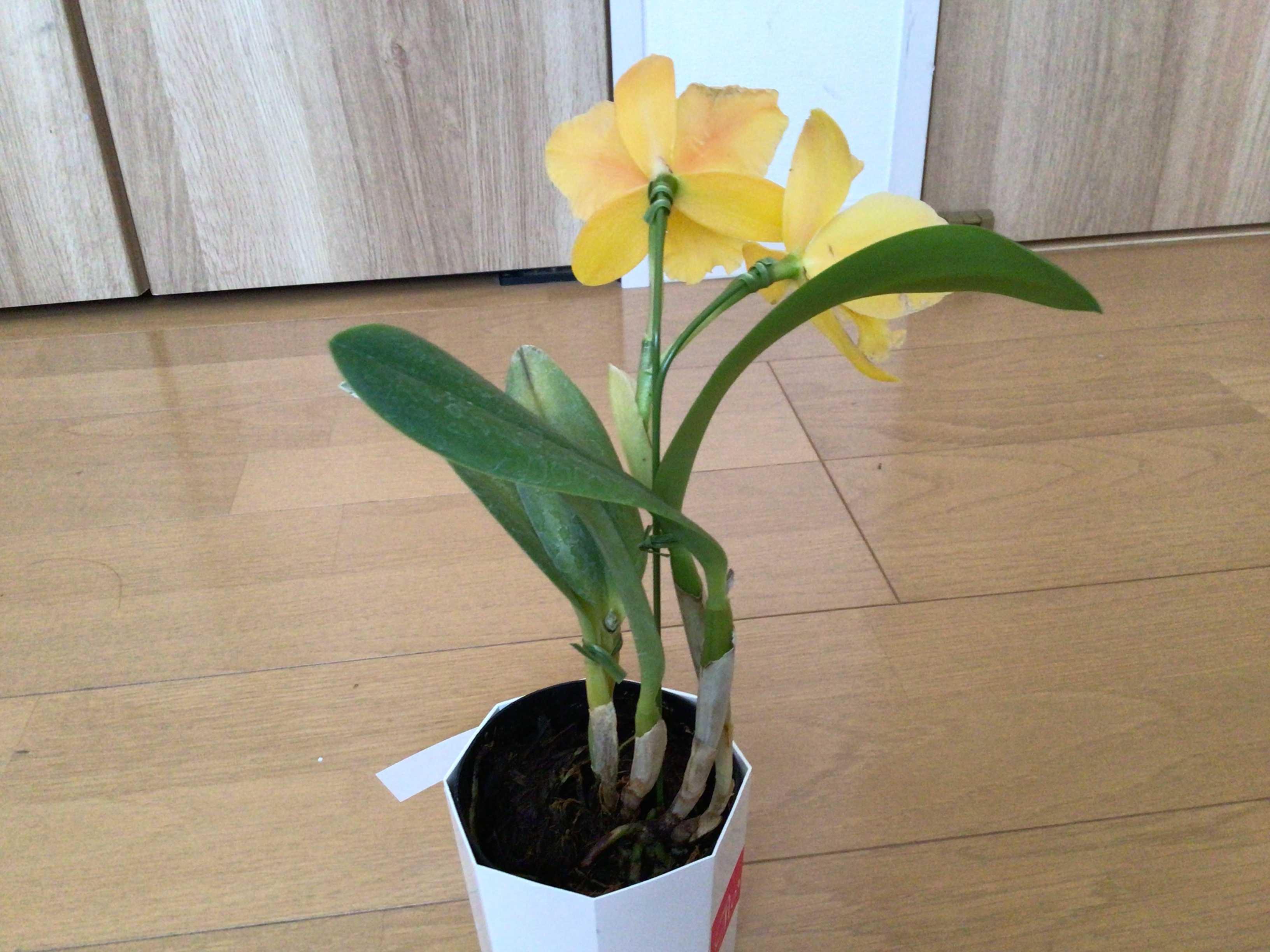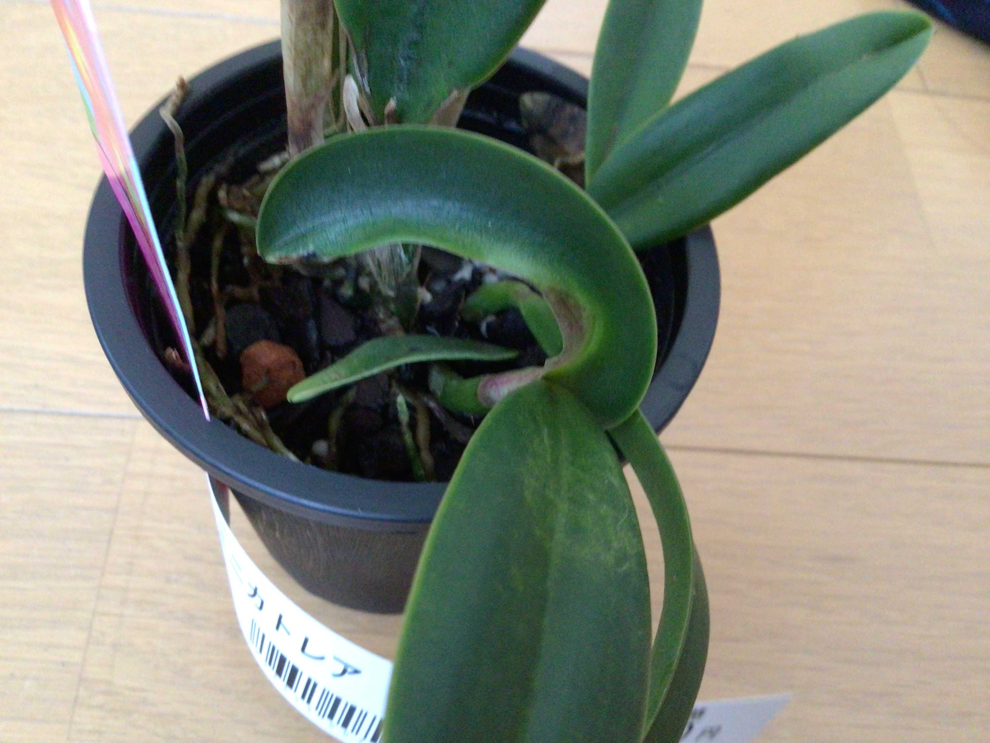 品種名不明ですが、小学3年の時に買ったカトレア・メモリアルゴールドと同じ株姿だったので連れて帰って来ました。