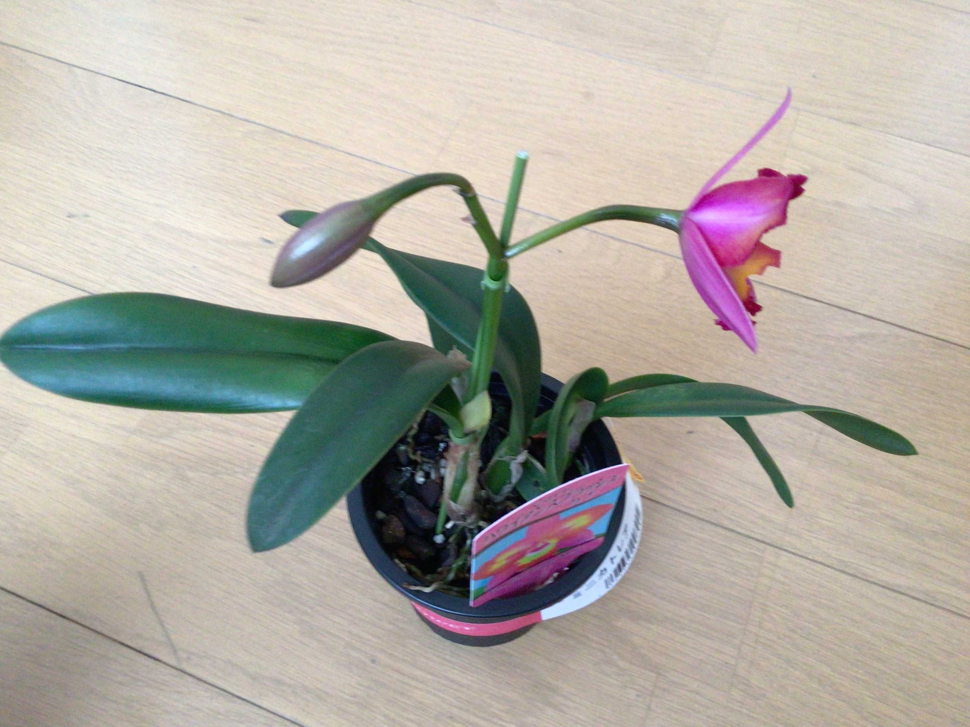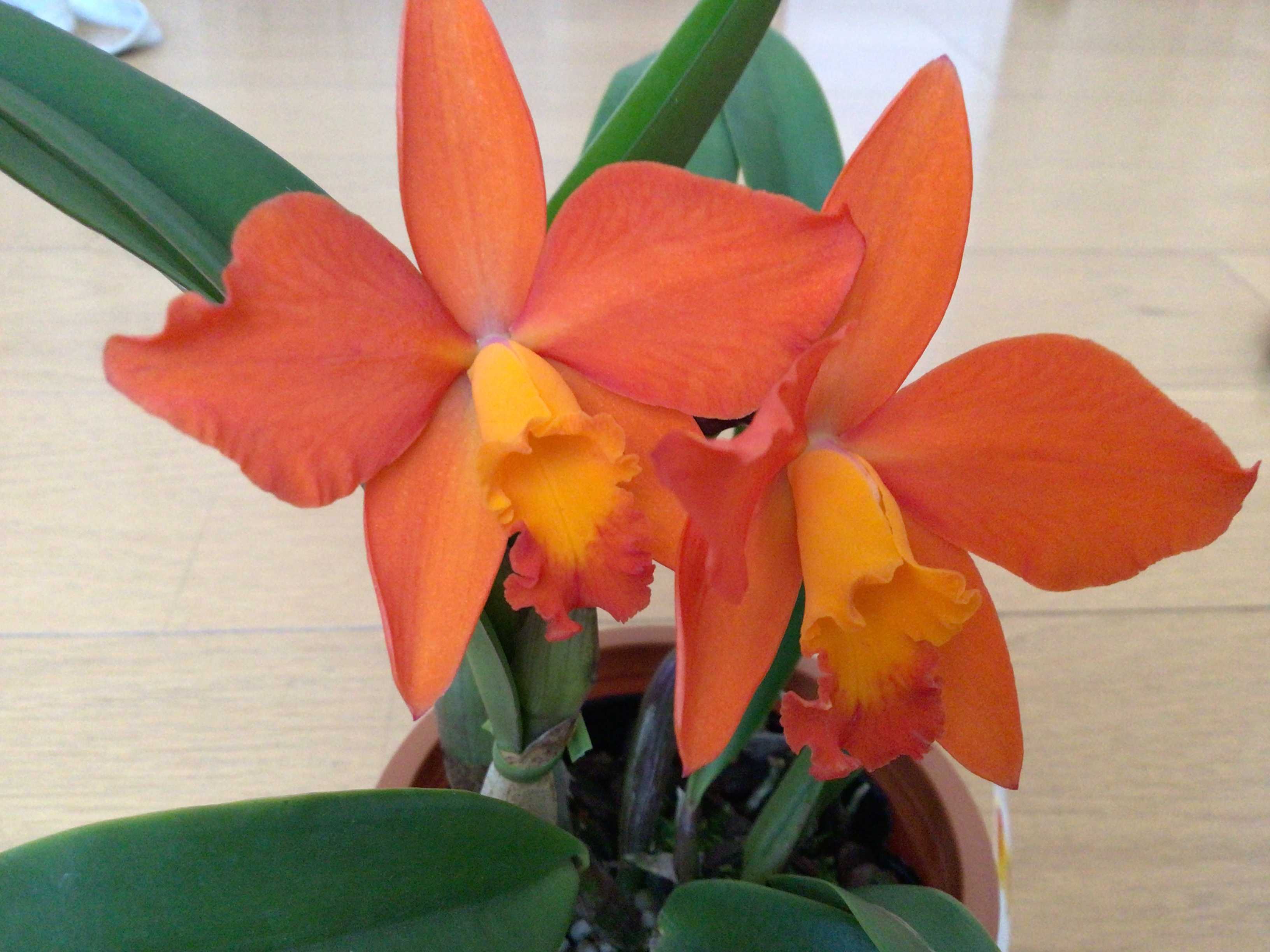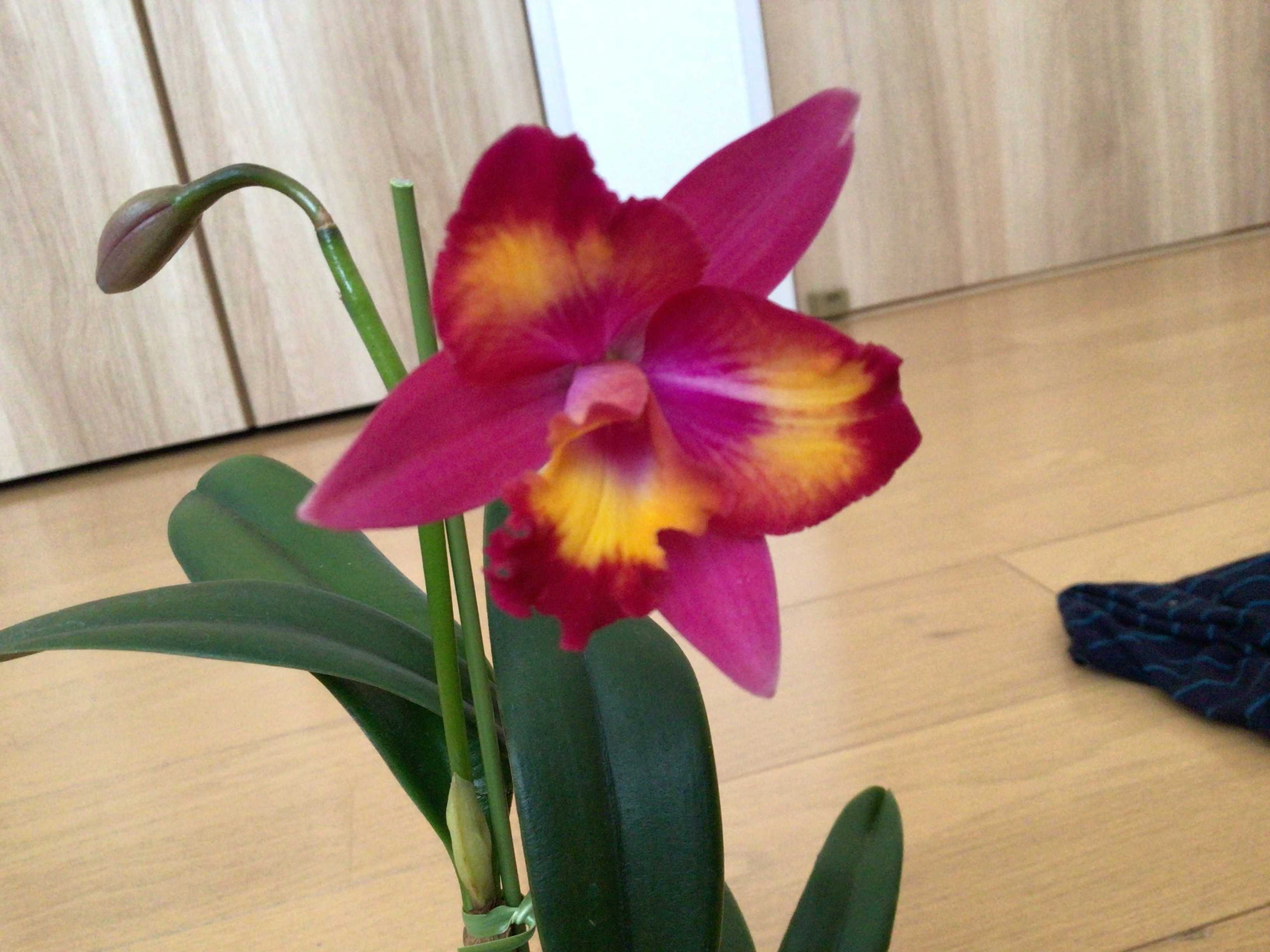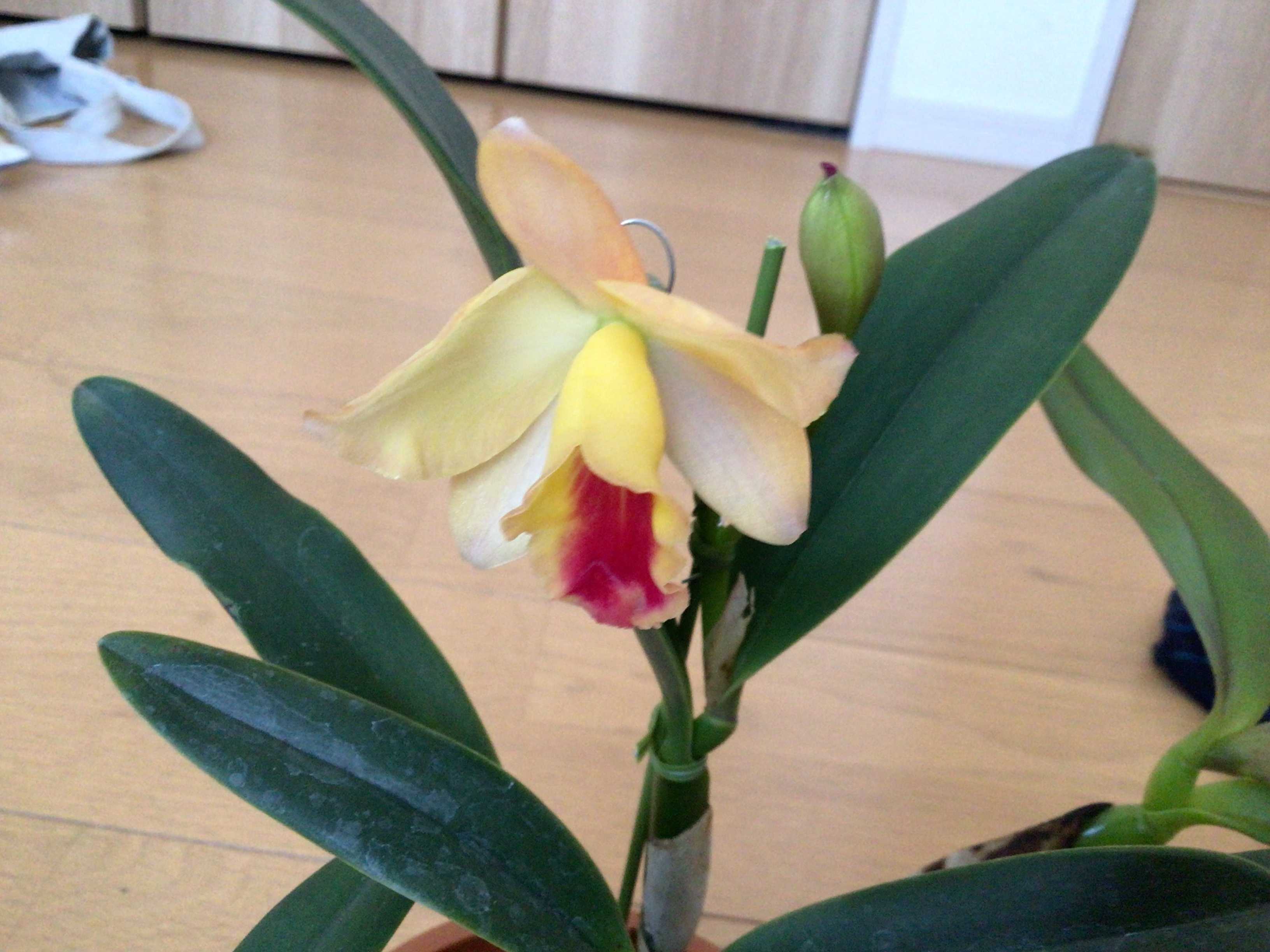 品種名不明ですが、小学3年の時に買ったカトレア・メモリアルゴールドと同じ株姿だったので連れて帰って来ました。