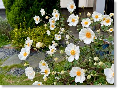 秋明菊今年の横浜は、秋がほとんどなくて一気に初冬になってしまったようで寒いです。今が一番美しいときなのに、このところ雨続き・・・秋明菊の花がみんな項垂れています。写真は、3日前に撮りました。・・・・・・・・・・・・・・・・・・・全て黄色いコスモスの種を蒔いた筈なのに微妙に違う黄色の花が咲きました。鮮やかなレモンイエローこの色が一番素敵なのですが どの株もひ弱なのが難点です。遠目に見ると明るい黄色にも、レモンイエローにも見えます。花数も多く、枝ぶりもしなやかで姿もエレガント〜♪よく見かけるオレンジ色の黄花コスモス見るからに逞しげ ^_^;一番好きなレモンイエローはひ弱ですし真ん中の花はなかなか素敵〜♪オレンジは野生児という感じです。チェリーセージと、我が家の実生のジニア秋の花たちが少しずつ色褪せ始めました。いつのまにか、小菊が蕾を一杯付けています。