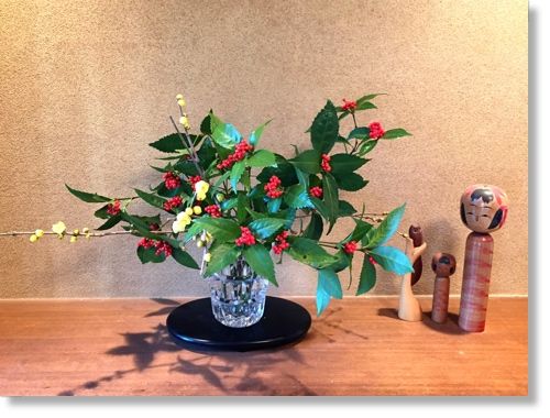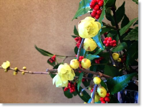 ↑ 床の間 ・千両(赤黄)と蝋梅