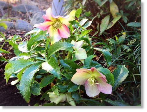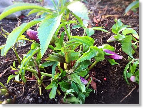 今年は庭掃除も目を瞑ろうと思っていました。けれど、明日は今年最後のゴミの収集日・・・。やっぱり気になって、今日はクリスマスローズの古い葉を切り取りました。古い葉を取ると、下には蕾がいっぱい隠れていて、、既に咲き出している花もありました。