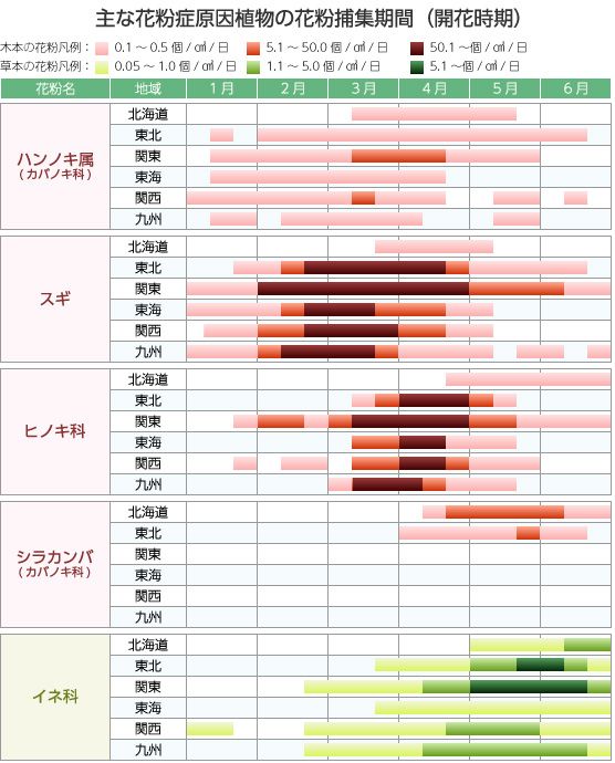 まず、花粉症の症状が発生するまでの過程について復習しましょう。 花粉症の症状は、アレルギー反応の1つです。原因原因は様々な植物の花粉が考えられます。有名どころで言うと、スギ、ヒノキ、カバノキ科、イネ科の植物です。あまりに症状がひどく、病院で検査の上、薬を処方されている方は、どれが原因か特定できているようですが、自分自身の症状がどの花粉によるものか、素人ではなかなか判断は難しいように思います。ちなみに植物別の花粉飛散シーズンはこちらです。出展元:大正製薬様症状発生までの過程 ① 鼻腔の粘膜にスギやヒノキなどの花粉(アレルゲン・抗原)が付着します。② 身体が反応し、体内に抗体が作られます。③ その抗体と肥満細胞(マスト細胞)が結合されます。④ 再びアレルゲンが鼻腔内に侵入すると、③からヒスタミンなどのアレルギー誘発物質が放出されます。⑤ ヒスタミンが、血管や神経などの受容体と結合し、鼻水やくしゃみなどのアレルギー反応が起こります。出展元:大協薬品工業様この過程を見て、イメージするだけでかゆくなりそうですね原因である花粉を近寄らせないアイテムも登場していますよアース製薬 アレルブロック 花粉ガードスプレー ママ&キッズ 75mlフマキラー アレルシャット ウイルス 花粉 イオンでブロック スプレータイプ 300回分 (120mL) PM2.5 黄砂まずは、アレルギーを引き起こす原因を吸い込む量を減らすことから始めましょう。
