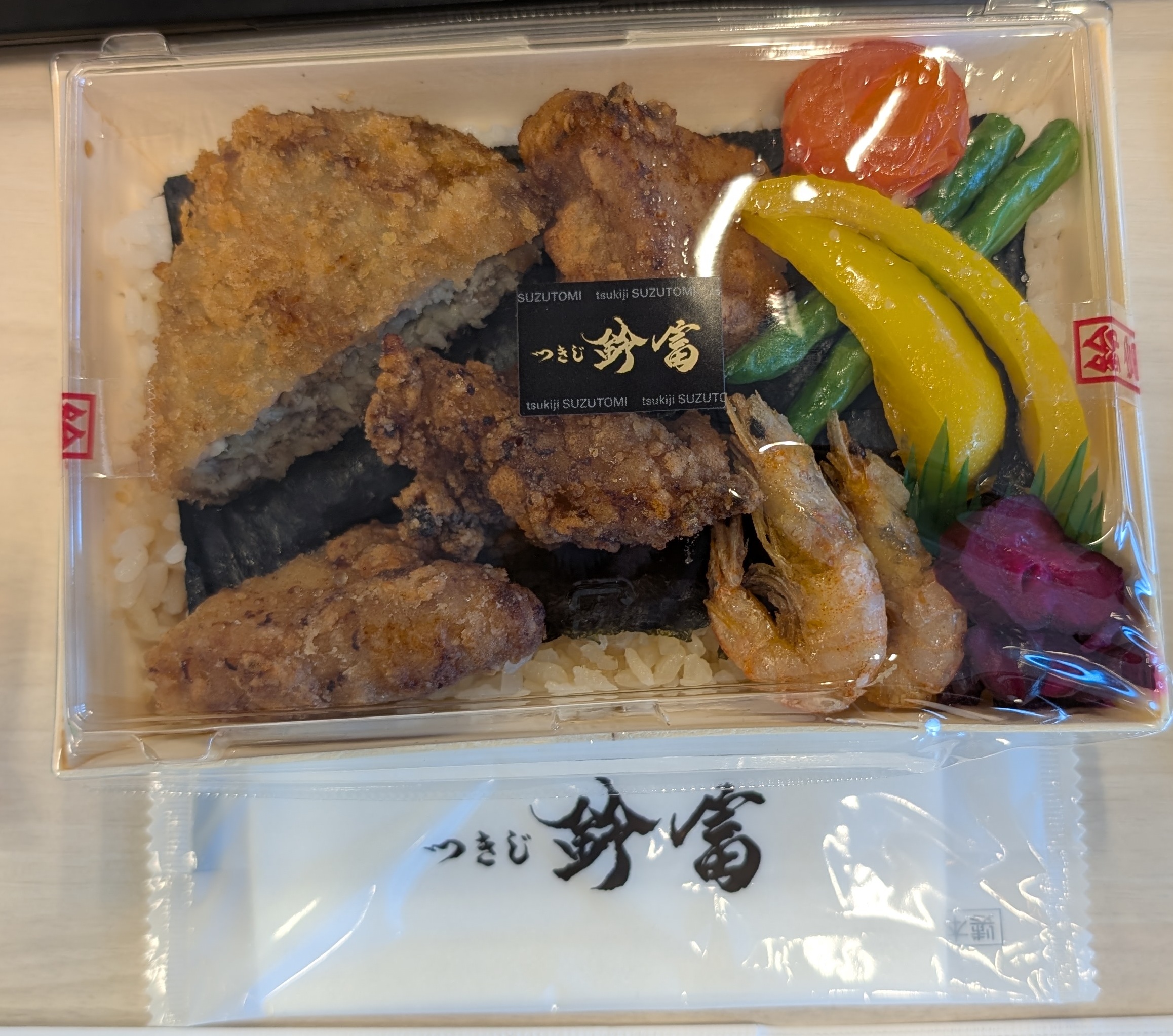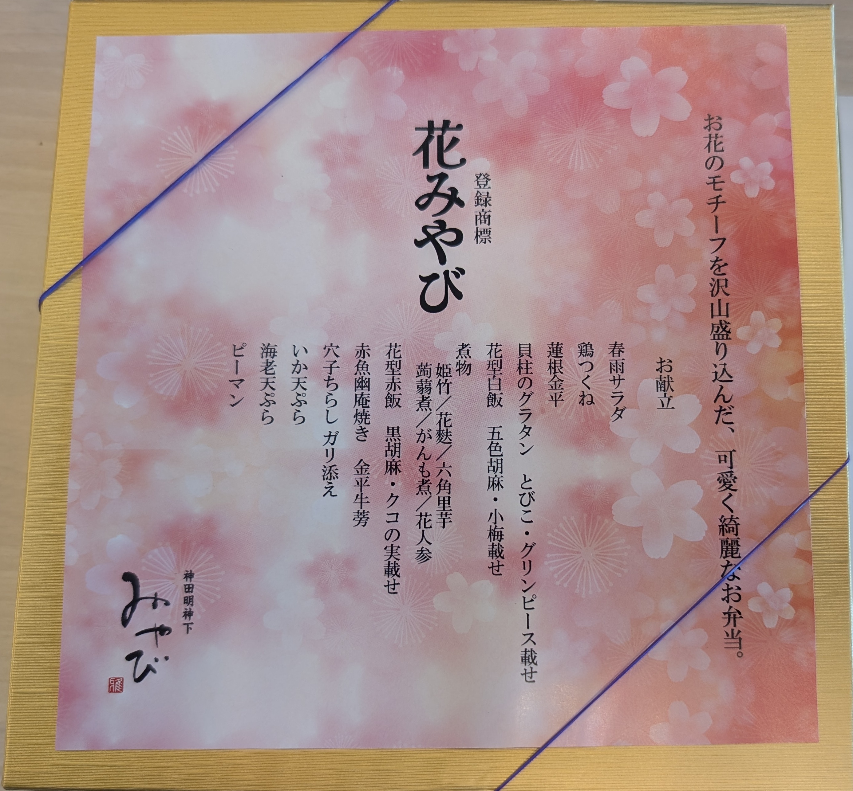 江戸前天ぷらが有名なお店のお弁当です。今回はおすすめになっていた「花みやび」というお弁当を選択しました。花をモチーフにしているというコンセプト通り、見た目が非常に素晴らしく、煌びやかです。一番奥の段のおかずカップの春雨の酢の物はニンジンやパプリカなどで彩を、グラタンはとびっことグリンピースで華を表現しています。やはりお弁当には若干の酸っぱさが必要で、酢の物1つあるだけで味の広がりが生まれると思っています。中段はごはんと梅干、花麩、ニンジン、赤飯とクコの実と色とりどりの華が咲いています。下段は、主力料理になっていると思います。ごはんが3種類入っており、白米、赤飯、チラシがあります。どれもそれぞれの色があり、ぎっちりとしたごはんでおいしかったです。おかずの種類が非常に多く、いろいろな味を楽しむことができました。甘さ、しょっぱさ、酸っぱさ、メニューのバランスが非常に良かったです。がつんっとしたうまみではありませんが、一品一品のコンセプトがきちんとしています。和食屋ですので、煮物やきんぴらは非常においしかったです。特に、きんぴらはレンコンと牛蒡の2種類入っており、レンコンが入っていることがかなり高評価です。てんぷらはお弁当の天ぷらでした。さすがに揚げたてのような薄皮カリっととはいかないですね。少し残念です。見た目 :★★★★★おかずの大きさ:★★★★★おかずの数 :★★★★★ボリューム :★★★★☆味 :★★★★☆お値段 :★★★☆☆ (1393円)総合評価 :26点/30点