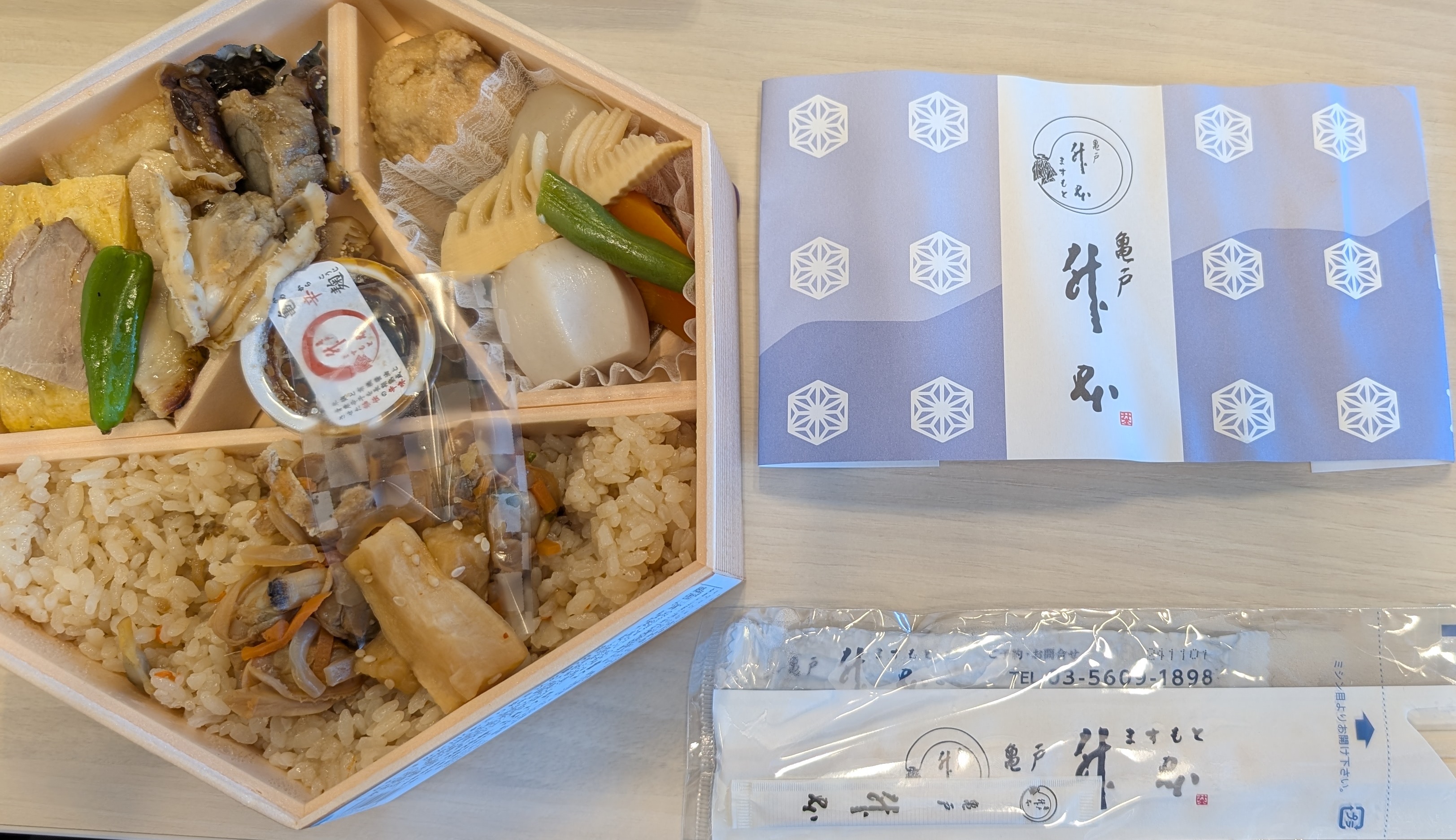 日本を代表する老舗料亭のお弁当屋さんです。今回は最も安い、幕の内弁当(琴)を選択しました。1620円で最安です。第一印象は、おさまりが良いという印象を受けました。彩り豊かで、どれも主張が強くないので、バランスが取れていると思いました。色は薄目です。おかずの種類も多く、6枠入っています。見た目の通り、味は上品です。塩味が強いということもなくだしが強いということもなく、かといって味がしないということもなく、何ともちょうどよい味付けです。逆に上品すぎて、どれも印象には残っていません。おいしいですが、印象も薄かったです。率直に、このお弁当を食べるタイミングがよくわからないなぁという感想を持ちました。このお弁当を食べるとするならば、ゆっくりと誰かと話しながら食べるべきかと思います。食事の後に予定がないことも大切です。昼休みにパッと食べるにはもったいないと思います。一人ではなく複数人で余裕をもって食べましょう。自分には早すぎたかなと思います。よくわかりませんでした。見た目 :★★★★★おかずの大きさ:★★★★★おかずの数 :★★★★★ボリューム :★★★☆☆味 :★★★☆☆お値段 :★★☆☆☆ (1620円)総合評価 :23点/30点