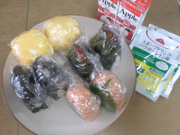 中体連が近いので、双子の次男&三男(中2)達バスケ部も、週末ごとに高校との合同練習や複数の中学校が集まっての練習試合が入っている。今日も、隣りのY市で、終日練習試合バスケの場合、お昼休憩の時間が決めてあるわけではなく、チームが揃って食べるわけでもないそう。個々が自分のお腹と相談しながら、試合の合間にパッと食べるとのこと。それで、こういう時の“週末弁当”は、いつもサンドイッチにしている。手軽につまめるし、第一、前の晩に作って冷蔵庫に保存しておけて、随分、私が楽なのだ試合の時はいつも、朝早くに出かけるからね今日も、7時前には出かけたけど、朝、ちょっと早起きして、おにぎりにした昨日、ものすご~く暑くてパンを買いに出るのがおっくうだったからさ~≪メニュー≫おにぎり(梅干し、鮭&大葉、鶏もものカレー風味唐揚げ、卵)りんごジューススポドリパウダー