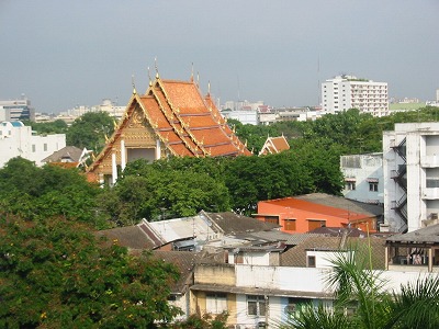 お気に入りのバンコクの 旧市街ランルアーンの風景です。ここにあるロイヤルプリンセスの六階から撮りました。六階で最上階です。緑もいっぱいあります。このあたり名前わかりませんがお寺も幾つかあります。ホテルの入り口をでて少しすると こんな感じです。この国の猫 走ってるの見たことありません。この辺 犬の糞多いのがちょっと難点。油断できません。この国の動物 人を決して恐れません。みんな殺生な事しないんでしょうね。でも 鶏は、美味しく食べられちゃうんです。ホテルの入り口から150メートル位の道並みでした。