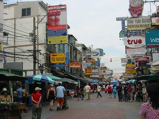 朝 毎回変わりのないバイキングでおかゆをすすった後 両替の為カオサンにいってきました。 ウイークエンドマーケットに店で使う食器を仕入れに行くのに バーツが足りなく朝一でよりました。夜は、原宿みたいな雰囲気ですが、出店もほとんど開店準備。で こんなの発見しました。140バーツ 円で420円。サンダルなかったので買ってみました。早速両替すませて ウイークエンドマーケットへ。雨の中 ひたすら歌い続ける お兄さん発見。お世辞でもへた。 なんかサングラスとこの髪型 昔の浜田●吾みたいな感じ。雨が降ってるもので歩きにくくて またまた休憩です。そこのマスコットボーイ。ずーっと汽車のおもちゃで遊んでました。私は、ずーっとチャンビール飲んでみまもってました。カオサンでこんな張り紙」ありました。カオサンの一横つの通りです。隣にいた タイ人の方が 知り合いの日本人に書いてもらったそうです。その方の話によると、この界隈では夜になると観光客相手に小象を連れてくる業者がいて観光客に餌を買わせて商売にしてるそうです。だから そんな商売が成り立たなくなって 象を田舎に返したいといってました。最近 バンコク市内で象を見た事なかったので まさか この地域に出現してたとは。この写真撮ったあと タイのその方に「ありがとうございました」といわれました。何か難しい問題ですが 動物愛護からいうと 賛同します。
