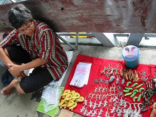 プラトゥーナムの歩道橋で商売してました。こういうの大好きです。たまりません。もちろんかいました。値段も良心的。決して値切りませんでした。奥の指 1本10バーツ。子供の手20バーツ。手前の黄色い う○こ 値段聞きませんでした。お土産に 手と指を買いました。プラトゥーナムは、いつもTシャツを仕入れにいってます。バイヨーク2の地下にお気に入りの問屋さんがあります。まとめて買うと結構安くしてくれます。(どこでもですが)ちなみに、時計なんかも パッポンの約半額で買えます。なぞの布団マン発見。はじめ 電話ボックスに入ってました。なんでボックスに布団が?観察してたら、親父が背負ってました。それもキティーちゃん柄。これは、買ってきたのか?それとも商材として売るのか?とりあえず 激写!