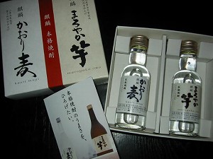 来月キリンから新発売される焼酎のサンプルを貰いました。「まろやか芋」「かおり麦」早速 御相伴に預かりました。まずは、芋から。鹿児島産の黄金千貫使用。ん~ その名の通りまろやか過ぎる。芋のビギナーの方には飲み易いとおもいますが、芋臭いのが大好きな私には物足りない。次に 麦。 なんか大麦っぽい香り。 それも そのはず 二条大麦使用と。こちらも 今ひとつ万人向けで癖がない。正直 期待はずれでした。(キリンさんごめんなさい)麦は、以前だしたピュアブルーのほうが麦の旨みをだして個人的には好きでした。今夜は、先に小牧で一杯やってしまってたので 芋は余計そう感じてしまったかも知れません。この新焼酎来月の7日発売だそうです。これは、あくまでも私感です。価格は720mlで1200円しないくらいだったと思います。興味のある方 是非飲んでみてください。