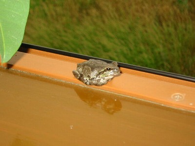 今日は、休みなんで昼からネットを見ながらチビチビやってました。突然 雨が強くなり窓を締めようと・・・・・・なんと この方お休み中!うちは、2階なんですが ペタペタ上がってきたんでしょうね。飼う事もできないから すんません 窓から帰ってもらいました。ごめんなさい。
