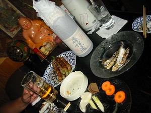 たくさんのお客様に御来店頂き大忙しの土曜日でした。後片付けをしてたら1時も回り 明日は定休日と言う事もあり久しぶりに従業員宴会やっちゃいました。今夜のメインのつまみは、マテ貝!もちろん焼きで。ほんと うまか貝です。なんにでも 合いますね。それと、アスパラの肉巻き。豪快に切らず1本食いです。生から始まり、気がつけば やっちゃいました。伊蔵様まで いちゃいました。これには、バイト君も大喜び。みんながんばってくれたから御褒美ですね。 でも、伊蔵様までいかなくても・・・・・・・・・