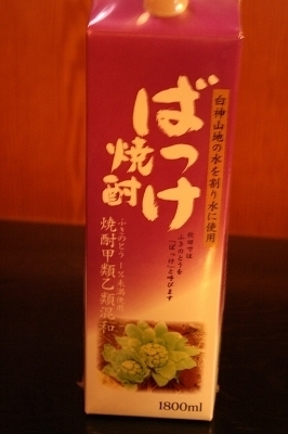 地元の 秋田県醗酵工業さんから新焼酎 「ばっけ焼酎」が発売されました。 こちらの会社は オエノングループで さつま美人の福徳長さんや たんたかたんの合同さんとも 同じグループ会社です。 さて 「ばっけ」って?地元の方は、もちろん御存知でしょうが ふきのとう の事です。 その「ばっけ」は、秋田県の県花だそうで この焼酎は、 それを原料に 世界遺産の「白神山地」の水を割り水に使用 して造られたそうです。 甲類乙類焼酎です。 まだ あけたませんが パンフレットには、 「ふきのとう」のほのかな春の香りとほろ苦さをお楽しみいただけます。」 とありました。 価格は 1314円 税抜きです。