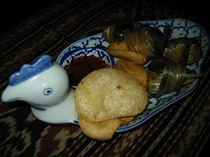 食べるときは、この葉っぱをとって お好みでチリソースをつけて
