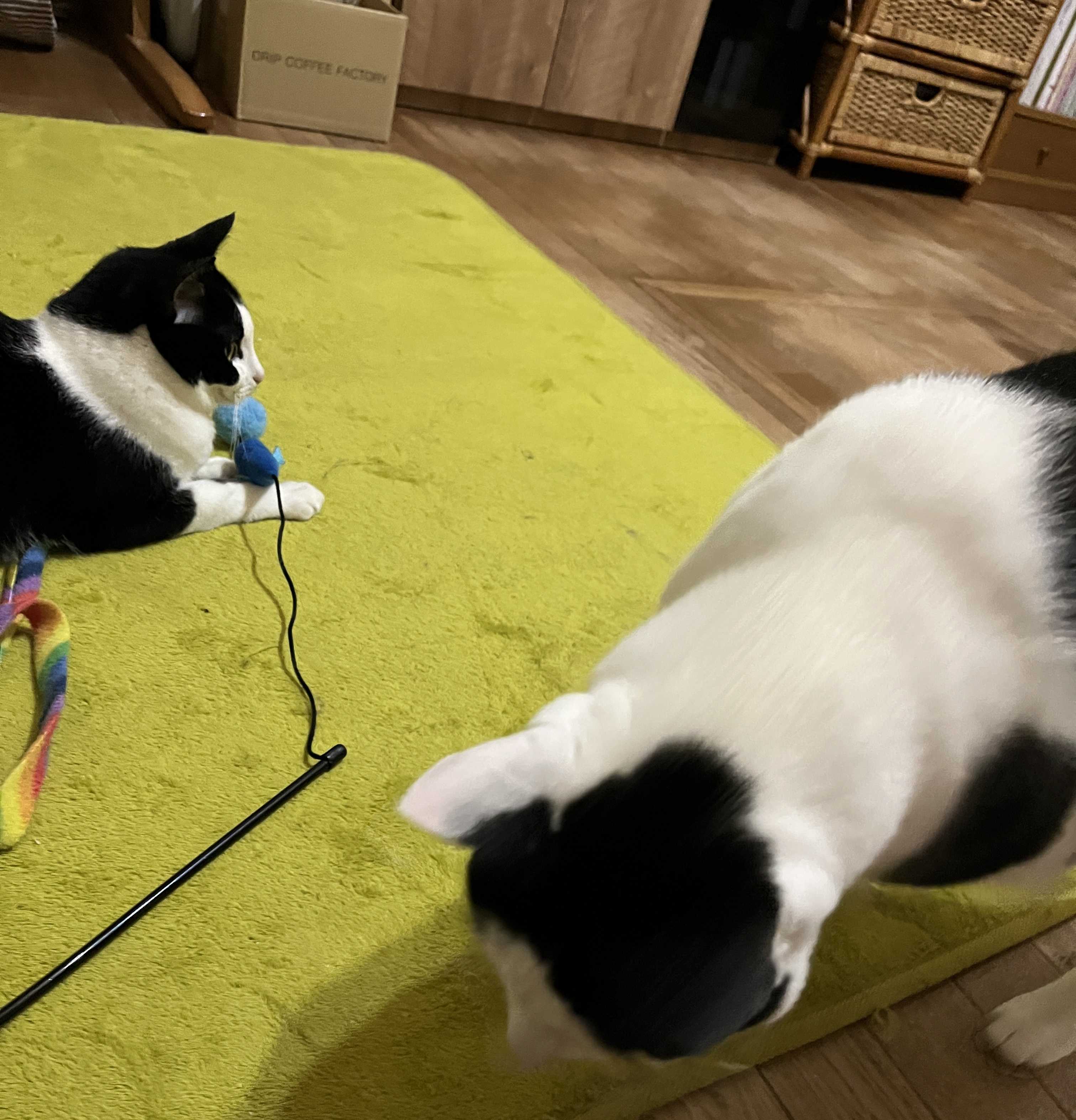 ペットコーナーを見ると、「猫は青に反応しやすい?」かなんか書かれた青い猫釣竿オモチャがあったので、