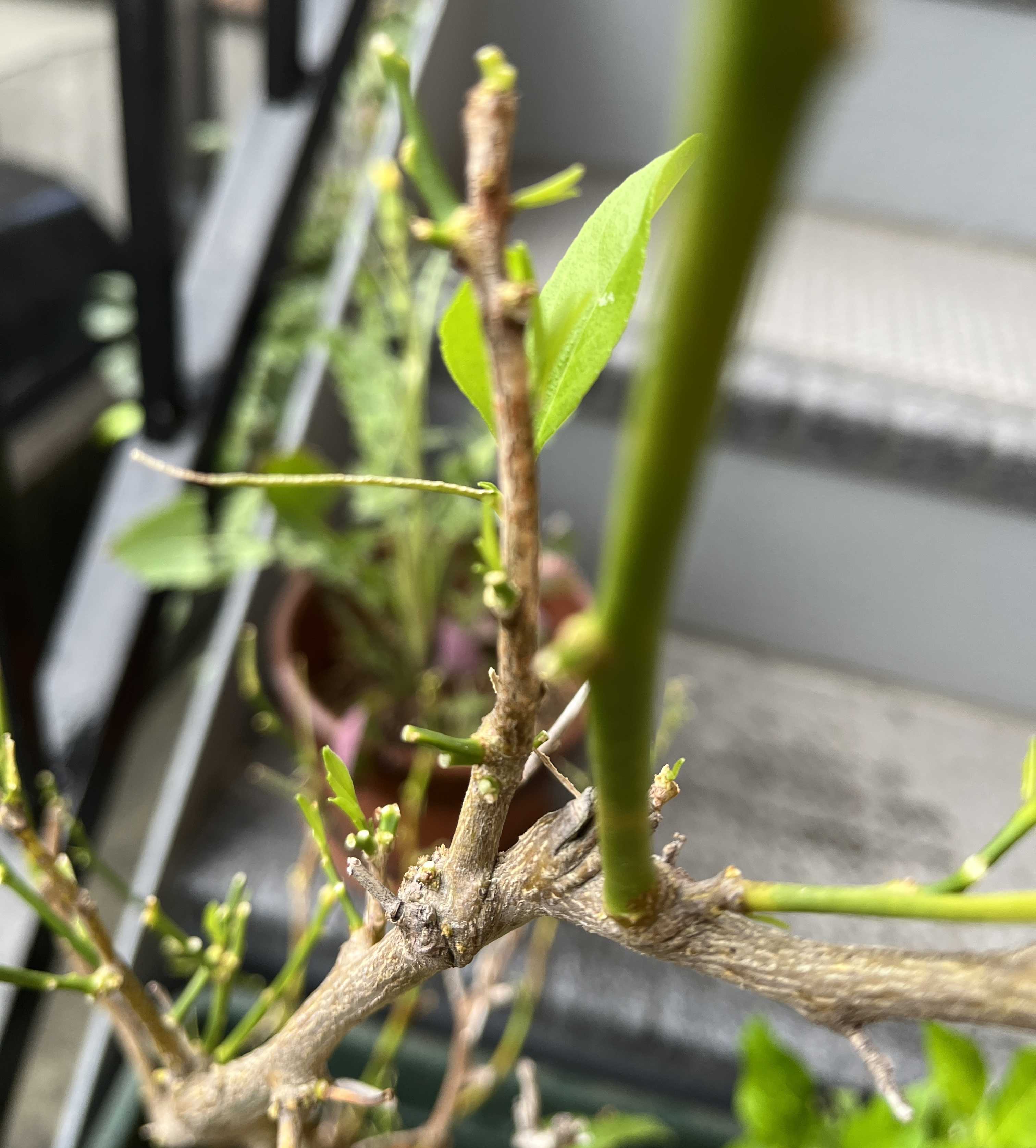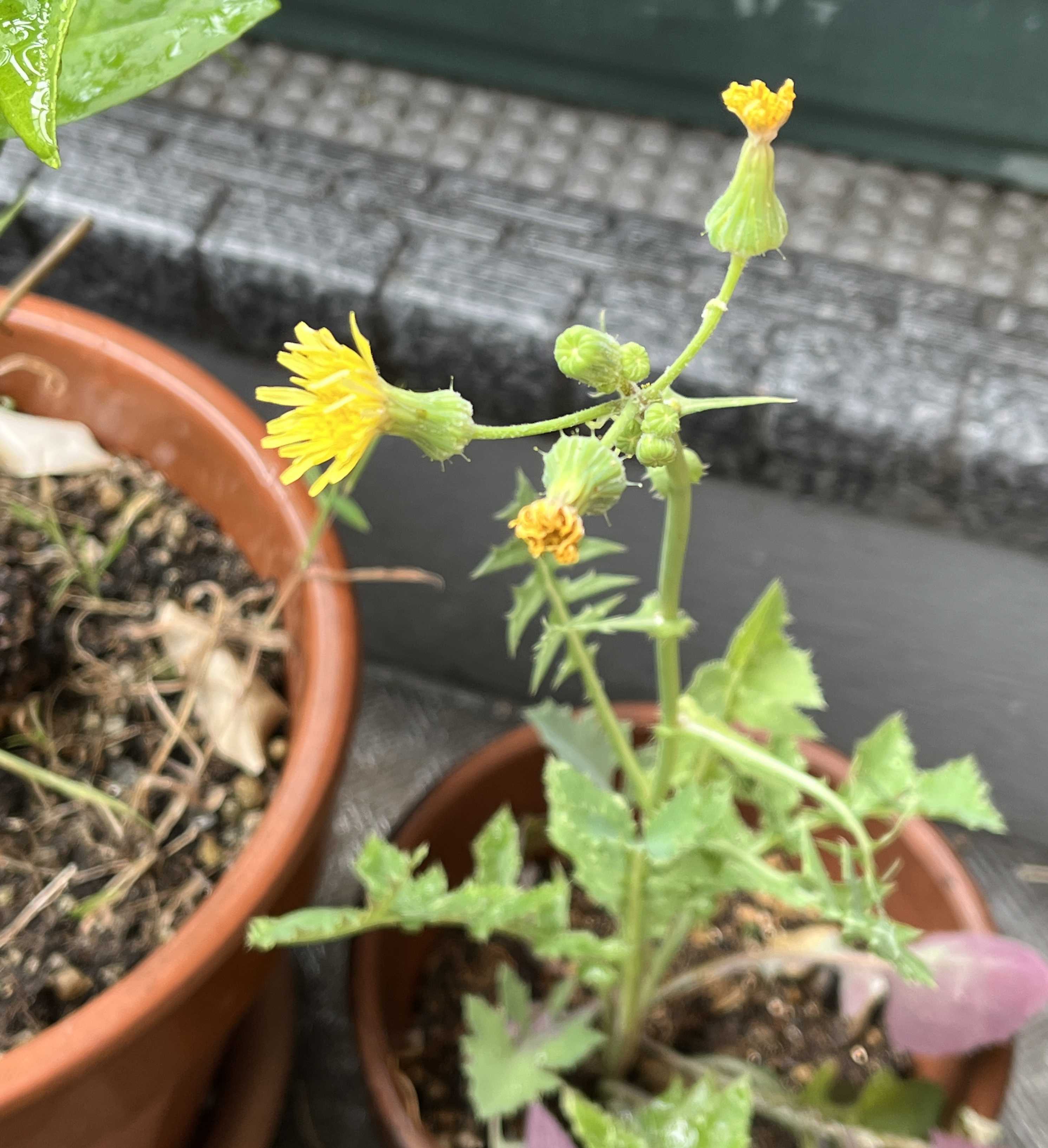 午後からの雷雨は凄かった。生徒が帰る頃にとても雨が強く、雨音と外の暗さと雷であには小さくなっていたし。あれはもう嵐と呼んでいいよねと思ったけど、そもそも嵐の定義って何だっけ?と思い調べてみたけど、そっちじゃない嵐ばっか大量に出てきます。違います、私が知りたいのはそもそものやつなのよ。暴風雨は嵐と呼んでいいらしい、強風であることが条件みたい。小さな葉っぱがまたひとつ、出てきているよ。歓迎だよ。元気だったので余った鉢に植え替えた草。蕾がそろそろ開きそう。キク科ノゲシ属のノゲシさん、で合ってる?あに、雷雨ビックリしたね、怖かったね。明日は晴れマークが出ていたよ。
