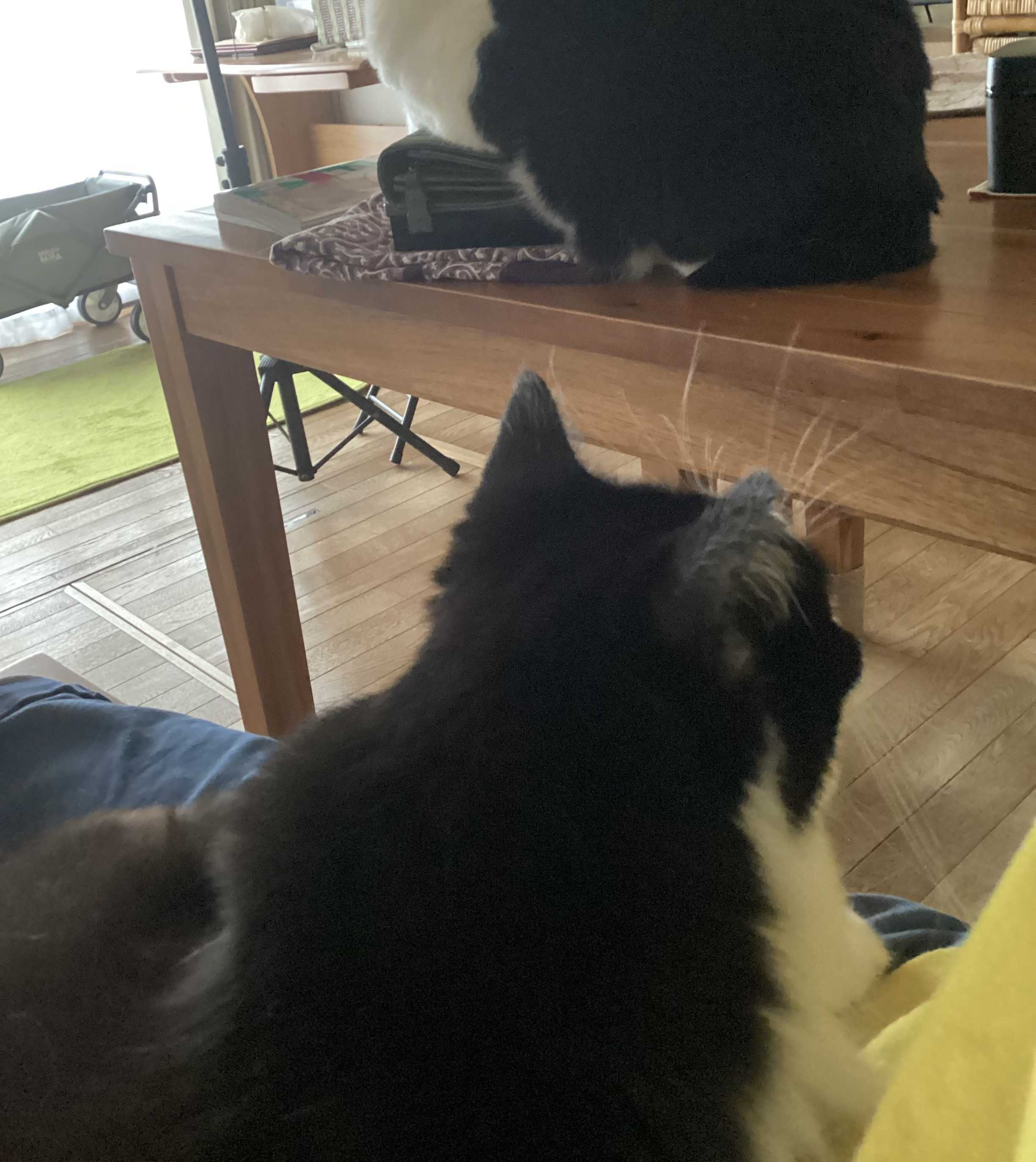 朝ゴハンを待つ、あにてる。おはよう。ゴハン、マッテル。朝ゴハンを待つミキ。おはよう。ココデ マッテル。そのゴハン台、使いますよ。みなさんの曇りなき眼が今日も眩しいわ。そして、てる晩ゴハンを待つ、曇りなき眼で。ハラヘッタゼ。とっても曇りなき眼ですね、羨ましいよ。ゴーハーン!ゴーハーン!曇りなき眼ですね。そして昨夜は、曇りなき霧山くんが帰宅。7月頃から生徒へ貸し出していた。とても気に入られていた霧山くん、良い仕事したね。おかえり。