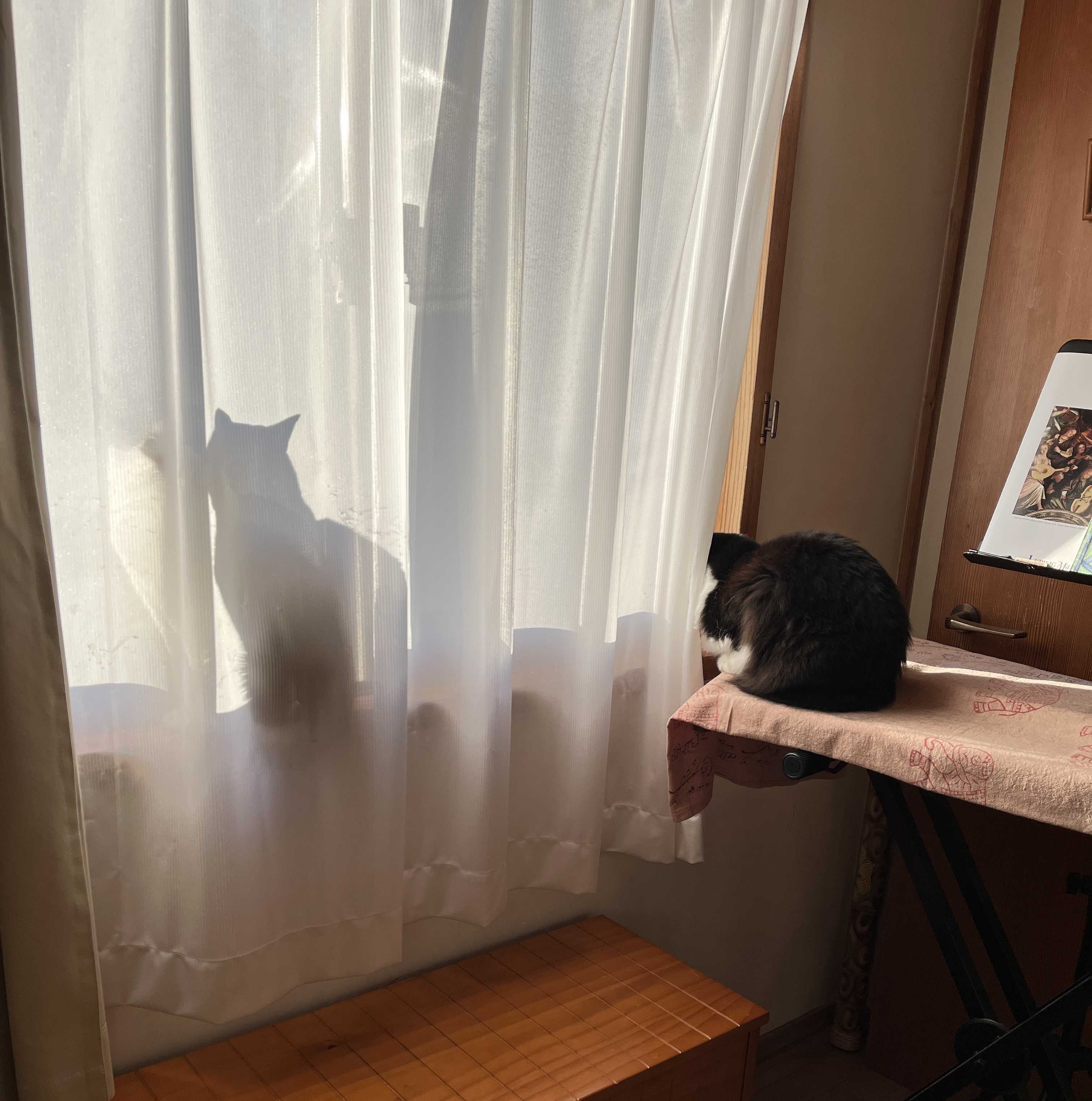今、目の前のてるのオシリを眺めている。ドーンとしていますなぁ。いいですなぁ。少し離れて上から目線で。ドーンとしていますなぁ。やっぱりいいですなぁ。今日は午後に少し外出をした、日陰はヒヤッとしたし、日向は日傘が必要だった。外出先で少し人と話す機会があった、猫のお世話をするために元気でいないと、と言う私の言葉の意味が分からない人のようだった。ん?猫に対して何の責任感を持っているの?みたいな返しをされたのでドン引きして、しばらく言葉が出なかった。まあ、価値観はそれぞれですから猫に関心がない人間がいたってそれも普通なんでしょうけど、何だろう…何か嫌い。