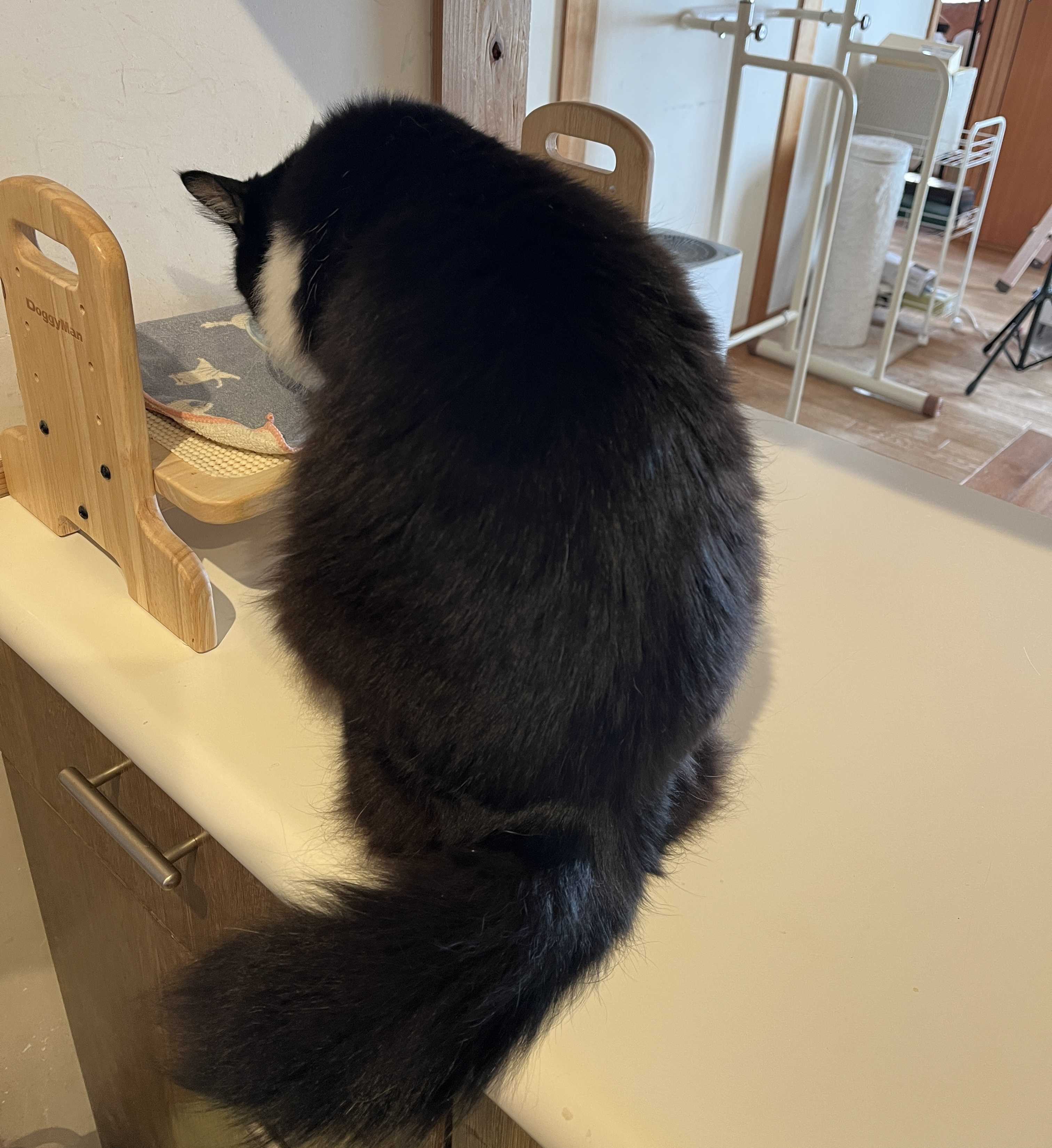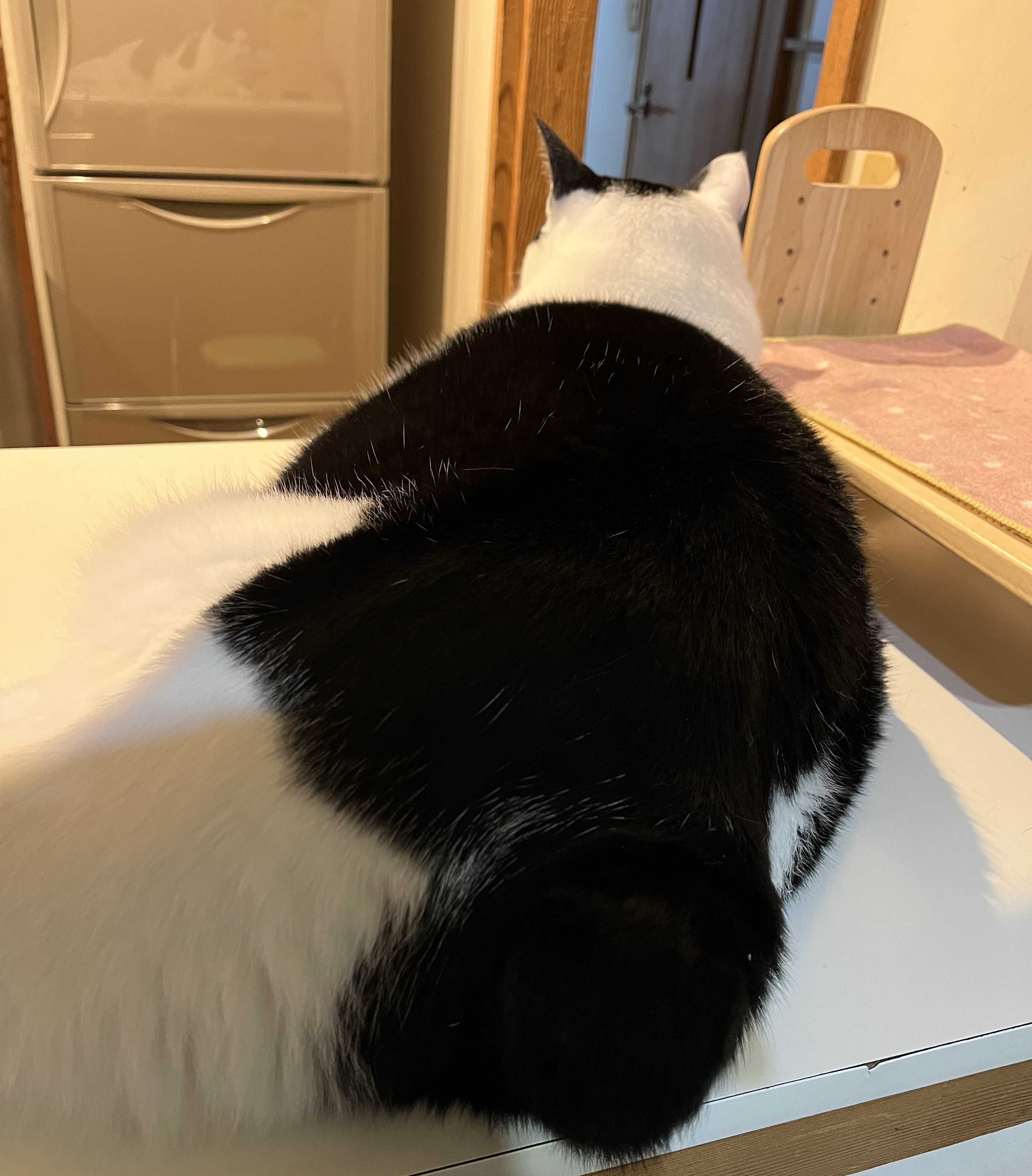 てるの後ろ姿を撮る。冷蔵庫にもほんのり映っていますよ。丸いなぁ、てる、丸いですねぇ。ミキにネフガードを毎日2粒、固形の方が飲ませやすくて助かる。ミキの腎臓は今、どんな感じなんだろう、普段と変わりなく見えているけれど。