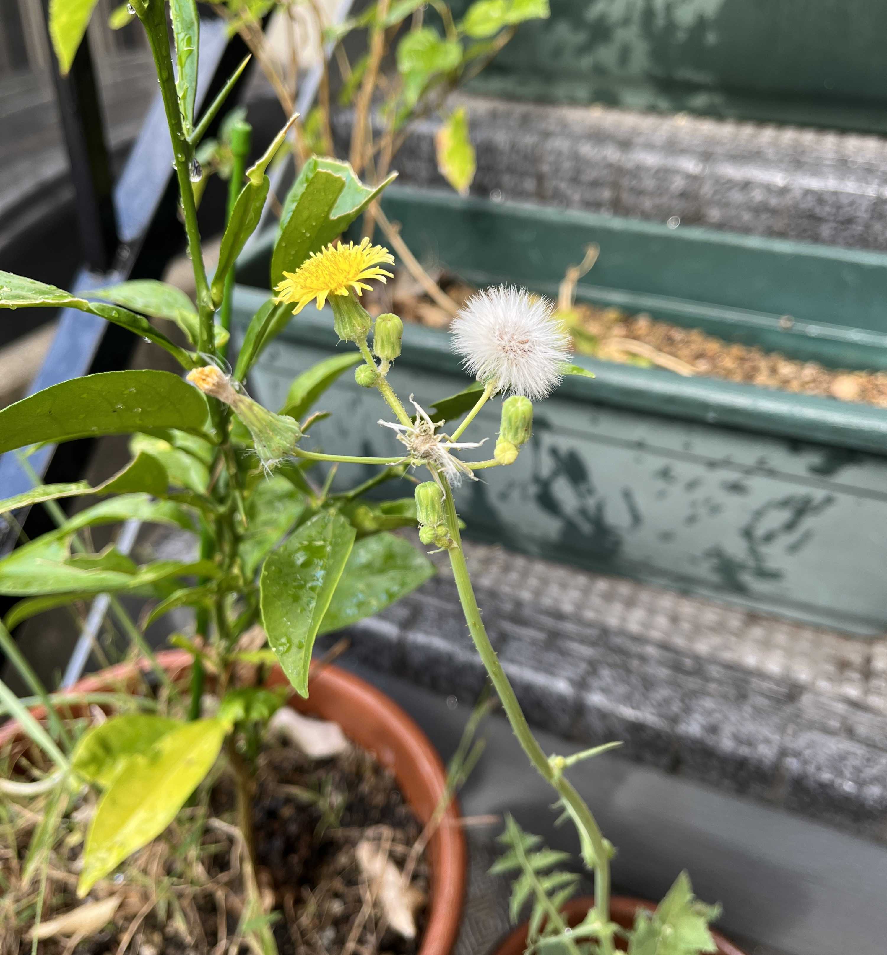 昨日載せ忘れた草の写真。ノゲシさんの花と綿毛、かわいい。背も伸びたね、ひょろりと長い。柑橘系の木、葉っぱくん仲間たちだいぶ増えた。アゲハの季節も過ぎ、また来年。植物たちを見ているとホッとする。植物はいいなあ。