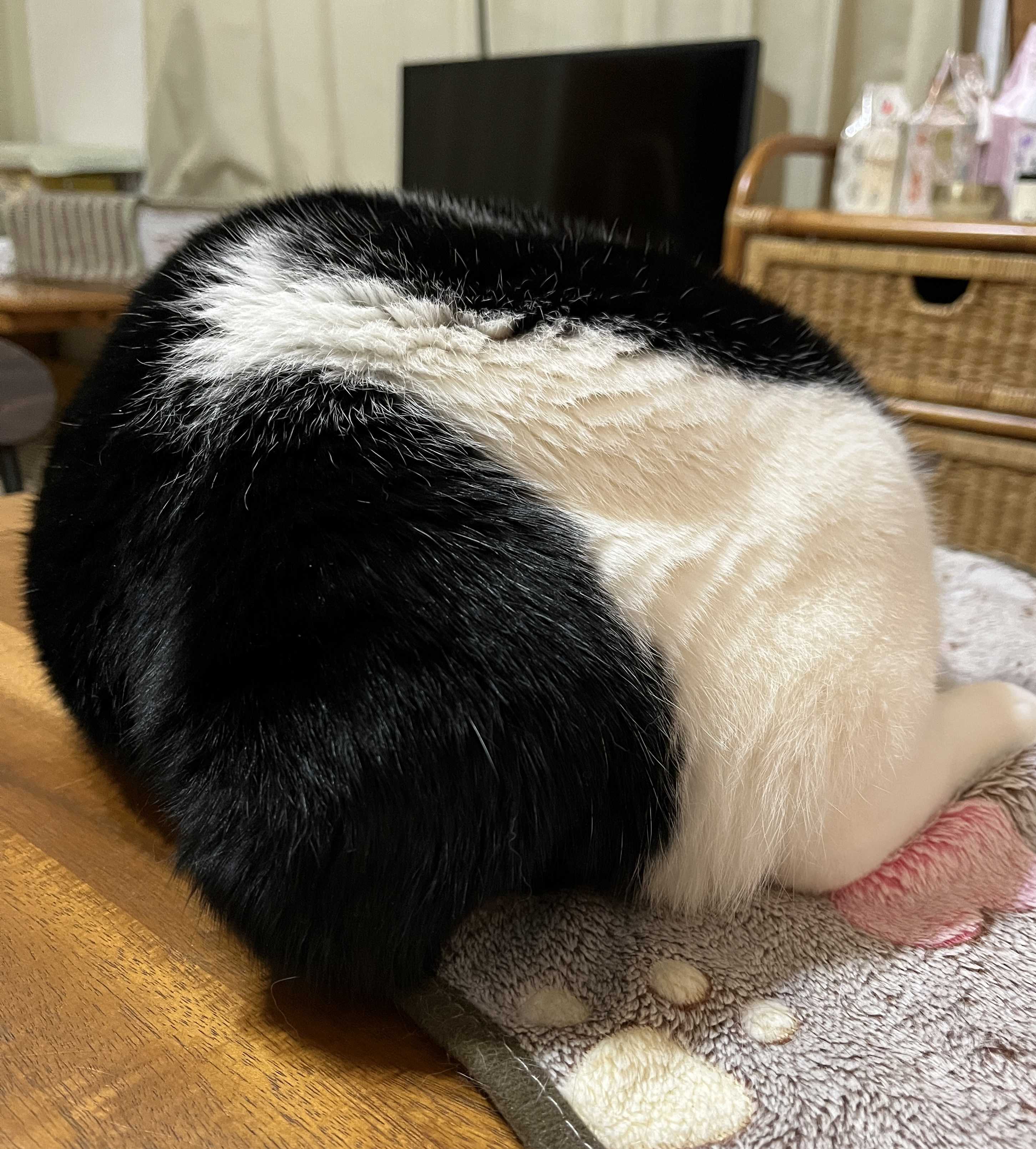 仕事が終わってひと息。大好きなてるのオシリを撮る。てる、今日も可愛がってもらってたね、よかったね♪ヨカッタゼ。てるのシッポは歴代で一番短い、シッポというより突起みたい、そんなシッポの付け根をポンポン、ポンポンと軽くたたくとスヤスヤ寝てしまう、てる、かわいいなぁもう。