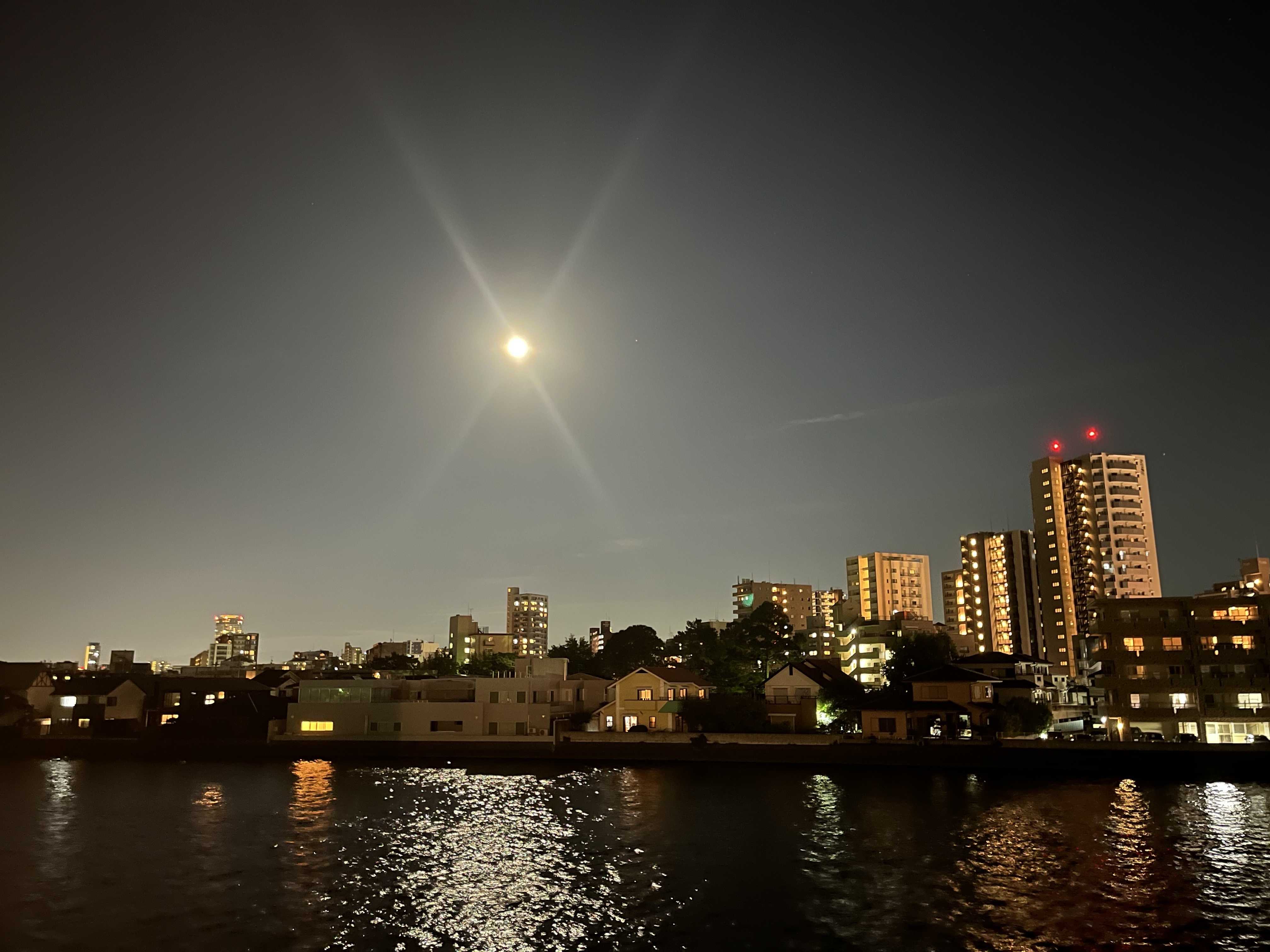 今日は日中もよく晴れていたから、部屋の窓から見えるお月さんもくっきりきれいだ。はにわクンから届いた、お月さんの景色。きれいだなぁ。今夜は観月会(という飲み会)だそうで、楽しくてなにより。