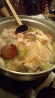 年末も迫ってきて、慌ただしい季節ですが、昨夜はジム仲間との忘年会に行って来ましたエアロでガッツリ動いた後に、みんなで移動しての忘年会みんな大荷物持って、何の集団やろうって感じでしたがこんな会に誘われたの初めて和食料理屋さんの宴会コースで、飲み放題コース総勢10人の忘年会ほんとはもっと誘ったら「行きたい」という人がゾロゾロ出てくるんだけど、あんまり多過ぎても、まとまらないし、幹事さんも大変やしという訳で、内緒の忘年会ですここで暴露してしまってますが、まあバレないしねほんとに外でお酒飲むのは久しぶりです私はお酒ほとんど飲めませんすぐ寝ちゃいます昨日もカクテルを2杯が精一杯他の方はガンガンいっとりましたビール、カクテル、ウィスキー、ワイン、なんでも来いって感じで、すごい元とってくれて、ありがとうって感じでした初めて行った料理やさんだったけど、すごいおいしかったメインはお鍋よせ鍋です生ハムサラダこの他にも色々料理が出て来て、初めて馬刺しなる物を食べました超おいしかったし、お刺身もコリコリしていて新鮮で感動しましたまた行きたい料理屋さんです最後にデザートも出て来て、美味しかった大好きな抹茶アイスに小豆がそえられてて、満足気が付けば10時30分越えてて、電車がなくなる~と言う訳で、終電なくならないかヒヤヒヤしながら無事家にたどり着きましたお風呂入って、気が付けば午前様ですしかし、ほんとに楽しい1日を過ごせましたで、今朝はやっぱり眠いちゃんと仕事は行きましたが、お昼からはひたすら寝ておりましたどうやらこの宴会、定例会にしたいらしく、「次回はいつするどんな頻度でする」って、幹事さん楽しそうずっとみんなでワイワイやれたら、嬉しいなあ