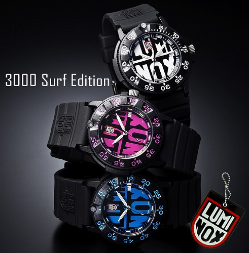 皆様こんにちは、山倉です。最近は、ご注文のお客様、9割がクリスマスギフトのようで皆さんルンルンで選ばれてるのかな~と想像してしまう私です。さてさて、今日は、入荷したてホヤホヤの新作を紹介致します。~Luminox 3000 Surf Edition 200本限定~いろんなジャンルの方々に愛用されている「LUMINOX」。その中でも『サーファー』達に高い支持を受けているという事で、今回、LUMINOXからサーファー達へ送るトリビュートモデルが発売になりました。文字盤全体にロゴを配し、インパクトのある3色での展開。ブルーは海、パープルは太陽の赤と空の青の中間色、ホワイトは砂浜とサーファーをイメージした配色となっております。ルミノックスロゴのフローティングキーフォルダーが付属され、なんと各色200本限定。これはマストハブアイテムです!各 34,650円 商品ページはこちらから BEST Time Gear Station .Com Storeは下記のblogランキングに参加しております。↓↓みなさまの応援クリックをお願い致します!↓↓