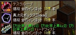 こんにちわ!ベタピンですう(*^・ェ・)ノ 題名通り今年最後の異次元をしました^q^去年のこの時期に背中作って成功したのでまぁ~今年はね・・・アリアンで露天の見回りしてたら運比速度杖が売ってたので借金して購入買ったら異次元したくなったので借金して異次元購入さぁ~借金を15億しましたよっとwww思い立ったら吉日なのでさくっといつもの秘密の場所に行きやってきました!!!今回は両方の素材に速度があるので成功率は25%ですなbb1/4の運を引けば・・・きたー!!!!50%のベースまずは勝ちですな^^後は・・・OPです!!!今までここまではこれた!!!!!この先が重要じゃああああああああああああああああああああああああああ( ̄∇+ ̄)vキラーンきたあああああああああああああああああああああああああああああああ!!!!!!はい!毎年この時期にやる異次元は成功するのかもしれませんなwやっとこれでWIZの装備はある程度完成ですね~^^@1個鎧をコピー成功すればWIZ装備は当分放置になるでしょう^^今年最後の異次元で成功なので新年を気持ちよく迎えられます^^ではノシ