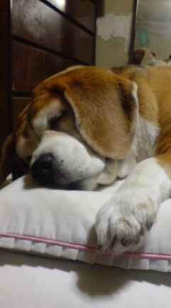 初めてお目にかかります・(ワンコ殿とは、私のことなのワン、ワン、も一つおまけにワン)かなり、グラマーなんでーすよん。相棒がめちゃくちゃ栄養をつけさせるもんで~。本犬としては気にしてませんが、相棒が心配して悩んでいるんですよ。(自分のせいだー!ダイエット、ダイエット!)とね。一緒に長生きしたいから、ダイエットに努力してます。(少しネ)。・・・ワンコ殿です、強いんです、デカイんです、・・・可愛いんです。家の宝ものはこのワンコ殿なんです。・・・あいつもこっちを(かっわいいババァ)と思っているのかなー。頼れるご主人様とは、思っていないかも・・・でもサ、でもサ、頑張るよ!一緒にギネスに載るほど元気で長生きしたいもんサ。いい加減で寝ないと、この寝顔がおこりだすのです~~~。昨夜は徹夜だったんでー。・・・おやすみなさいませ・・・
