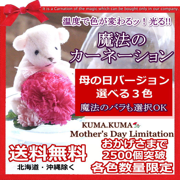 魔法のプリザ カーネーション バラ プリザーブドフラワー (KUMA・KUMA)温度で色が変わるッ★魔法のプリザ カーネーション バラ プリザーブドフラワー (KUMA・KUMA) 楽天で、さらに詳しくTOP
