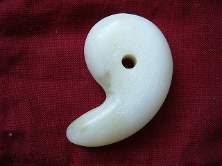 今日は某所の某イベントで勾玉作りをしてきました。勾玉作り・・・ずっと憧れてたんだよね~(→私が)。荻原規子さんの勾玉三部作も大好きだし!(>▽<;)。バニラも学習マンガ『日本の歴史』の1巻がお気に入りで(ちなみにウチには3巻までしかない)何度もくり返し読んでいるので、勾玉に興味津々で喜んで参加することになりました。最初に簡単に勾玉についてのウンチクが説明され、ちょっぴりかしこさ度アップ!(by.まめっち)次に勾玉作り。一応デザインは自由に選べるようになってたので、各自好きなのを選ばせました。未使用の消しゴムみたいな状態の石(高蝋石)をひたすら紙ヤスリで削っていきますバニラの勾玉↓ バニラは根性ナシなので、す~ぐに「つかれたよ~!お母さん手伝って~!(-△-)」と言い出したので、やってみたくてうずうずしてた私はハマって手伝ってしまいました(^^;)。バニラ曰く、「もし勾玉の妖精とかが出てきたら、『たまちゃん』って名前にするね!」だって。ショコラの勾玉↓ ショコラのもおもいっきり手伝ってやりました(>▽<;)>。ショコラの勾玉は『てるてる坊主のような形の勾玉』なので、略して『てるたま』ちゃん。妖精が出てきたら『てるちゃん』にするそうです。作った後、感想などをみんな(30人くらい?)の前に立って(兄弟姉妹はセットで)発表しなければいけませんでした。バニラとショコラ、なんと1番バッターです。「大丈夫かしらん?」と内心ひやひやしてましたが、ショコラの方が先にハキハキと感想を言いました。(くっ、こいつホントに外ではしっかり者みたいな感じだわ・・・(--)ショコラに引っ張られるような感じでバニラも無事発表を終えます。う~ん、いい体験になった。その後本当に発掘された勾玉なども見せていただいて、とてもよい勉強になりました。イベントなんで無料だったし!(爆)お金を掛けずに充実した楽しい日曜日になりました~(^-^)。またアンテナを高くして、楽しいイベントを発掘したいです。ほくほくして家に帰ったんですが、二人が喜んで勾玉を大切に首に下げている(ヒモもセットになっていた)のを見ると、私も自分の勾玉が欲しくなってしまいました。 欲しいな欲しいな~。どうせなら空色のやつがいいな~(by.『空色勾玉』)。あ、でも色々調べてみるとアメジストがいいような気もする。そういえば子どもの頃友だちが買ってた学研の『学習』の付録に紫水晶がついてて、すご~く欲しくてうらやましかったんだよね~・・・。あ~、また物欲に火が点いてしまった。(だって最近石に興味津々だったんだも~ん)そのうちゲットしたいです<爆
