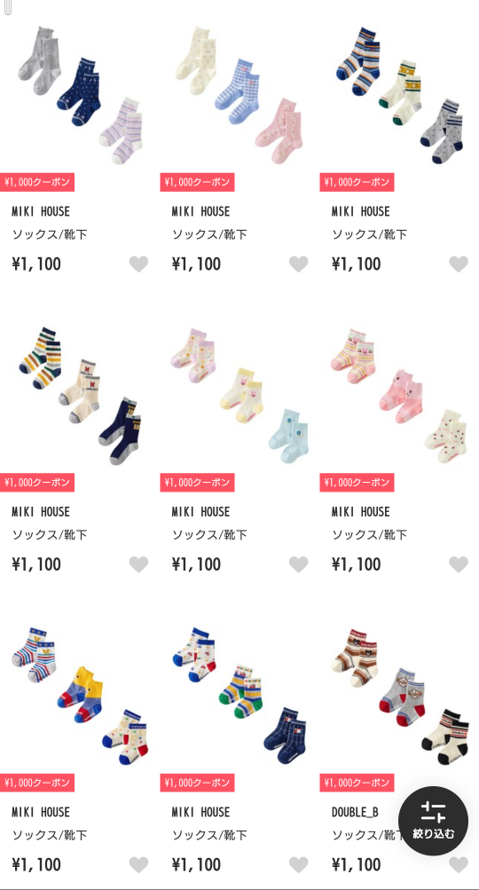 Z0さんで今日もミキハウスのクーポン出てるんですが、えー?1100円のソックスパックに1000円クーポン使えるようになってるんだけどどういうこと?!100円で買えちゃうよ??私が見たのは0時15分頃だったので、当然と言えばそうですが全て完売。うーん、0時ちょうどならあったのかしら??それともバグかミス??買えた方いたら羨ましいです。欲しかったなー。気を取り直して、他のものを見てたら顔ドンのTシャツを発見❤️かわいい〜✨✨楽天市場ではまだ入荷してないようでした。Zoなら売ってるけど…お値段が😅しばらくは眺めて楽しみます。【お買い物マラソン_ポイント2倍】【メール便_送料無料】mikihouse(ミキハウス) ダブルB(Doble_B) 2021年 新作ソックス パック ローカットソックス 靴下 ソックス ギフト、学校 通学 入園 入学 64-9623-389ネコポス便190円 ●【2021SS】【MIKI HOUSE★ミキハウス】ローカットソックスパック3足セット《17-19/19-21/21-23cm》プレゼント 男の子 女の子 入園準備 入学準備 出産祝い お返し 誕生日 クリスマス 子供 みきはうす 買い回り新作【2022年春夏】メール便送料無料 3Pソックスパック 男の子 女の子 17cm-19cm 19cm-21cm 21cm-23cm mikiHOUSEミキハウス ローカットソックス 靴下3足組新作【2022春夏】メール便送料無料 日時指定不可 ローカットソックス 3Pソックスパック 男の子 女の子 11cm-13cm 13cm-15cm 15cm-17cm 17cm-19cm 19cm-21cm ダブル_B ダブルビー ローカットソックス スニーカーソックス 靴下 3足組このぐらいなら買えるんだけどな(笑)【ポッキリ価格セール】【30%OFF以上】ホットビスケッツ(ミキハウス) Hot Biscuits by MIKIHOUSE お顔がどん!半袖Tシャツ【べビー】【メール便可】